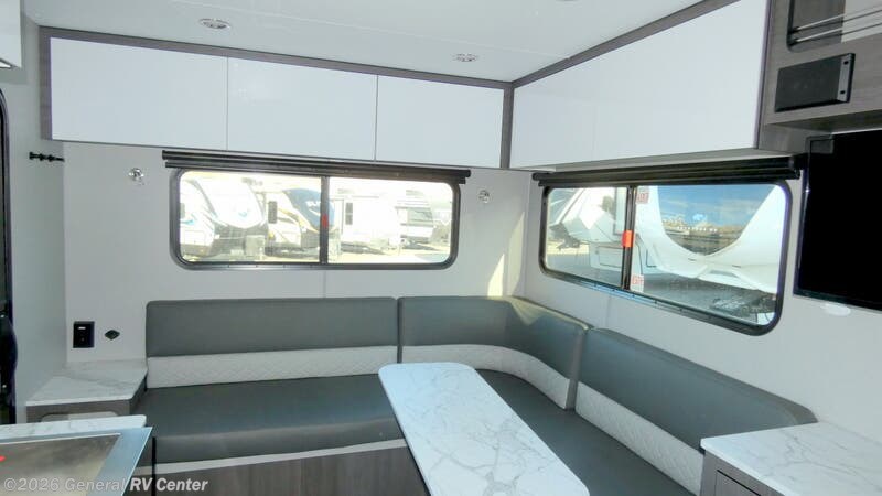 **inTech RV O-V-R travel trailer Navigate highlights:** - L-Shaped Dinette - 32" Smart TV - Convection Microwave - Exterior Storage Compartments Navigate tough roads in this O-V-R travel trailer! You will love having your own walk-around queen bed in the front bedroom, or you can choose the optional twin beds in place of the queen bed. There is a private porcelain toilet and a round sink across the hall from the shower, allowing two people to freshen up at once, and you'll appreciate the base cabinet with under-sink storage for your toiletries. Once you've worked up an appetite from hiking, head to the kitchen to prepare lunch on the stainless steel two burner cooktop and grab a cold drink from the 10 cu. ft. 12V refrigerator. You can dine at the L-shaped dinette, or head outdoors to relax in your camp chair. Add the optional slide out exterior kitchen or the optional 3.6kW LP generator for even more convenience! The O-R-V travel trailers and toy hauler by inTech RV allow you to experience adventure off the beaten path with its rugged exterior and lightweight construction provided by the all-aluminum fully welded cage frame. The power tongue jack will make setting up camp a breeze, plus there is a fold-away double entry step and exterior lighting for added convenience. Inside, you'll find a large farmhouse style sink, a MaxxAir vent for ventilation, plus infinity woven flooring. There is a Bluetooth stereo with four speakers and a 32" Smart TV included with each model, plus USB and 110V outlets to keep your electronics charged and ready to go. Further customize your O-V-R by adding the optional power awning or the optional Off-Grid Package with 400 watts of solar power, 20 amp hours of lithium batteries, and a 2,000 watt inverter!