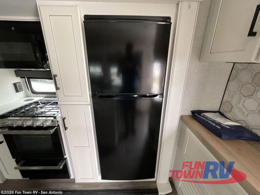 This travel trailer is perfect for your larger group or family! There is a rear private bunkhouse with two bunks, a tri-fold sofa, plus a slide out for more space. You will have the front private bedroom all to yourselves with a queen bed, and any other guests can sleep on the tri-fold sofa and booth dinette! There is also a wardrobe/linen closet with washer and dryer prep if you plan to add a washer and dyer for convenience. The chef can prepare their best meals with the kitchen island and will enjoy having two hutches to store the essentials. They could even cook at the outside kitchen to breathe in some fresh air and enjoy the beautiful scenery!