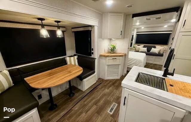 The 2024 Jayco Eagle 320FBOK Travel Trailer changes the game with higher-end features and finishes. Please take time to look at all the pictures and layout. Very nice RV inside and out!