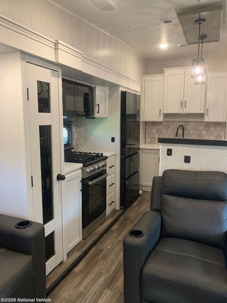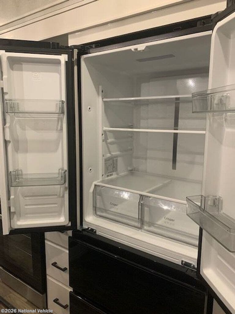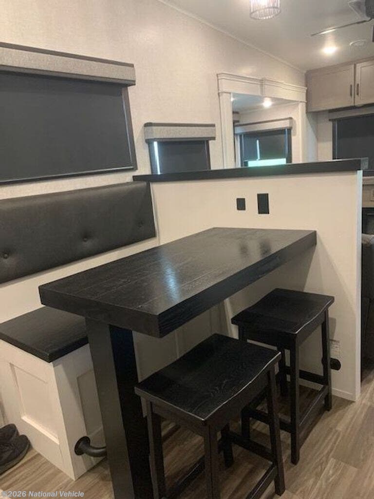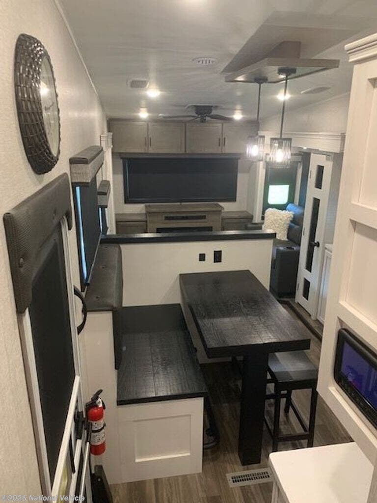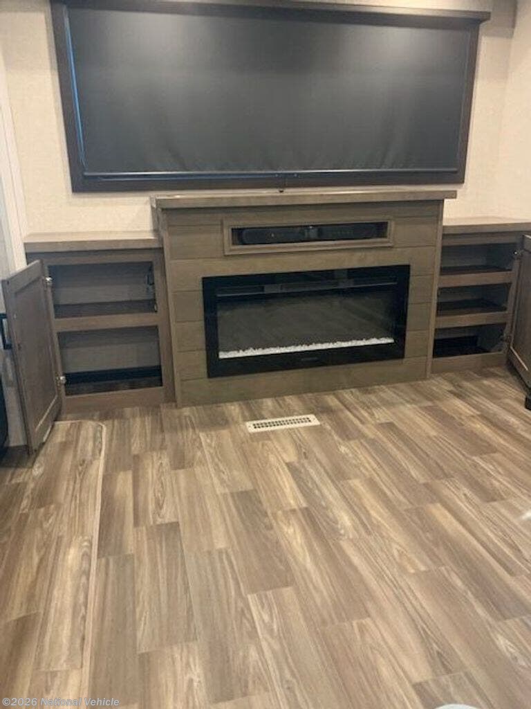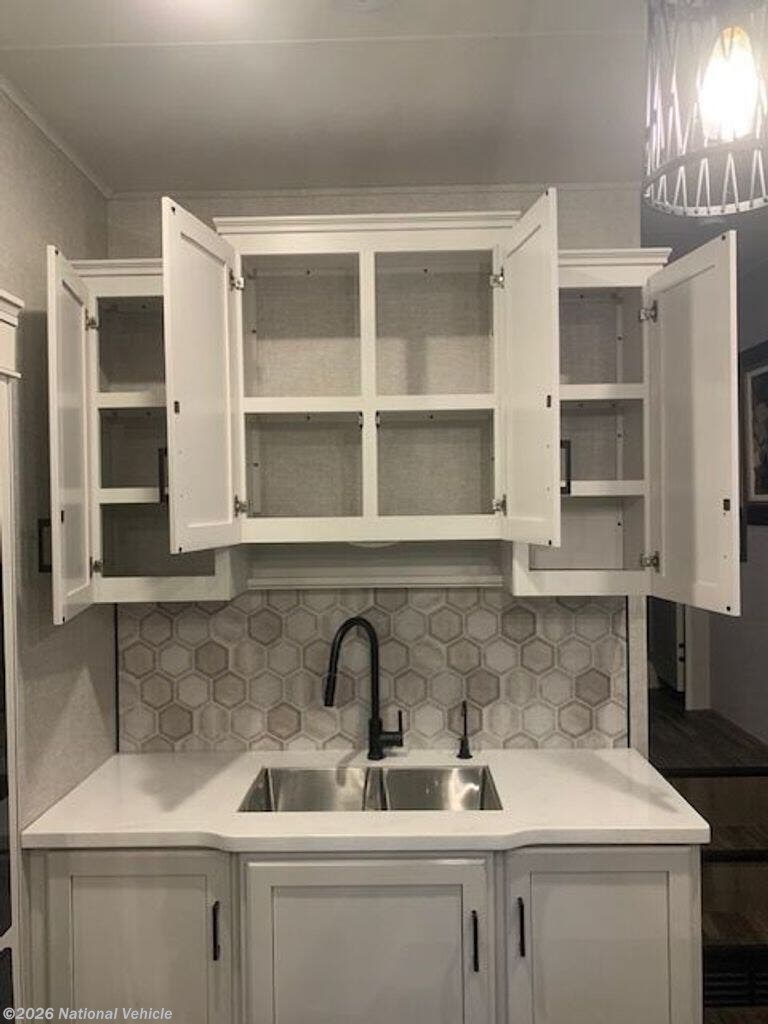 Inside, you?ll find a spacious rear-den floorplan with residential-style seating, perfect for entertaining or relaxing after a day of adventure. The living area features plush furnishings, large panoramic windows, and a warm, inviting atmosphere. The king-size bed, complete with factory bedspread, ensures restful nights, while abundant storage throughout makes extended trips effortless.