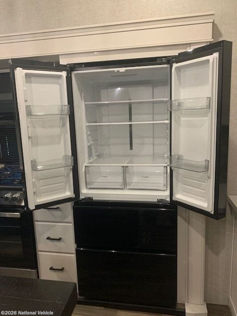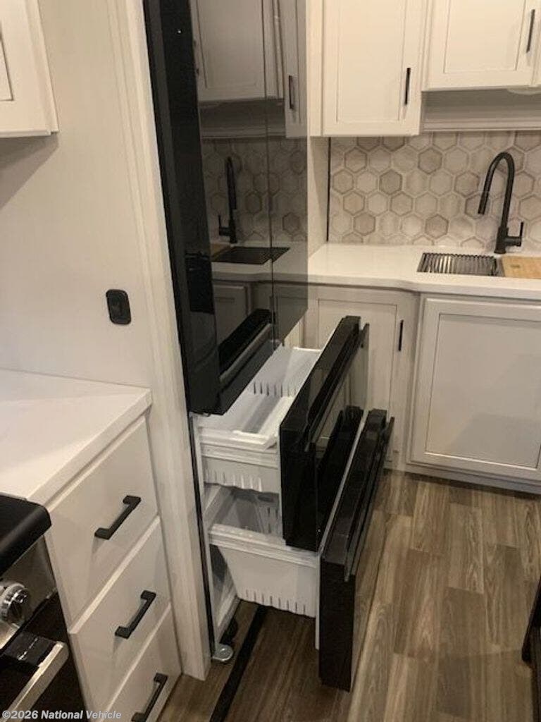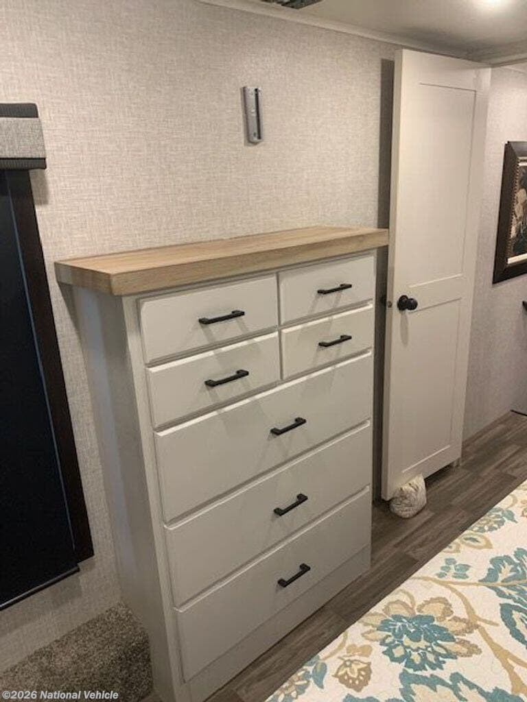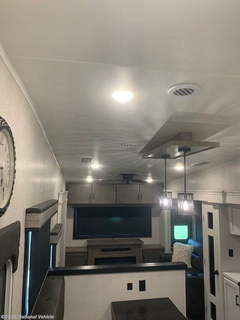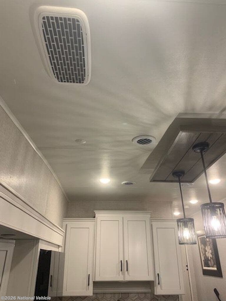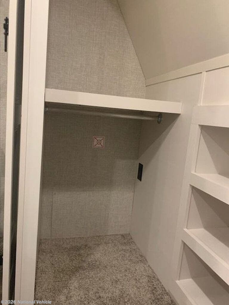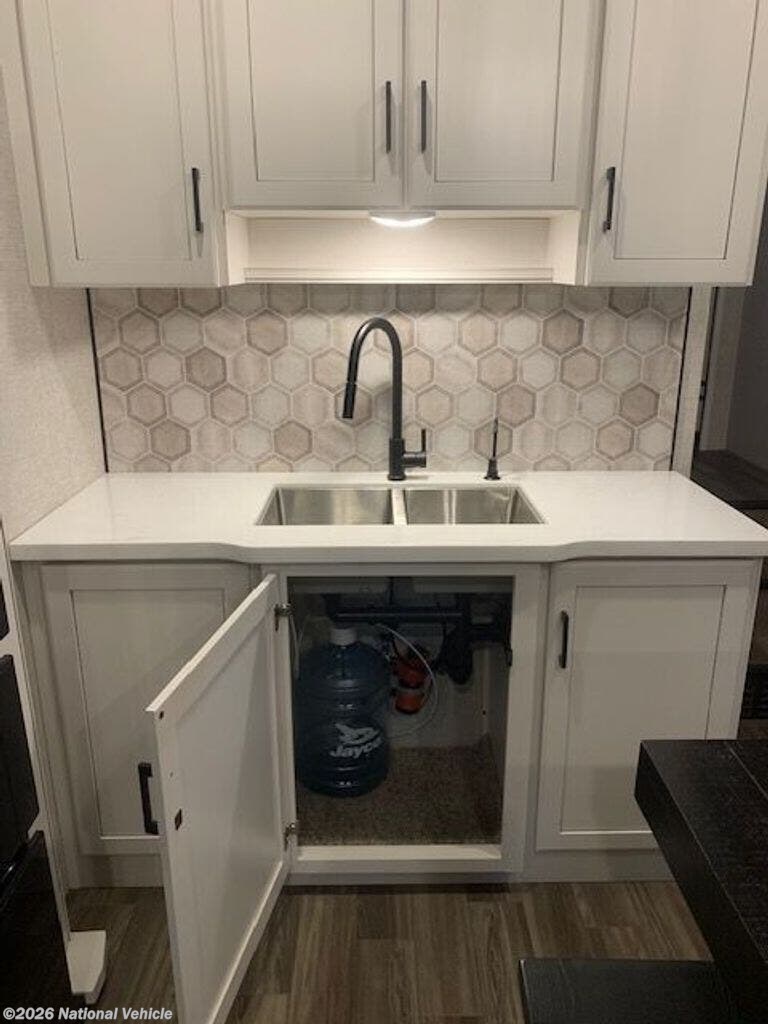 Inside, you?ll find a spacious rear-den floorplan with residential-style seating, perfect for entertaining or relaxing after a day of adventure. The living area features plush furnishings, large panoramic windows, and a warm, inviting atmosphere. The king-size bed, complete with factory bedspread, ensures restful nights, while abundant storage throughout makes extended trips effortless.