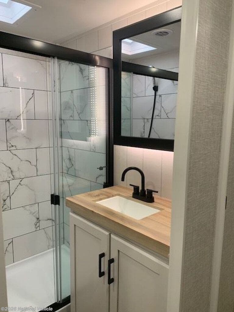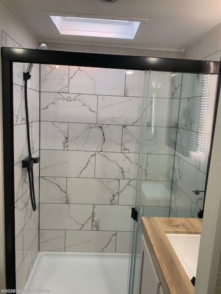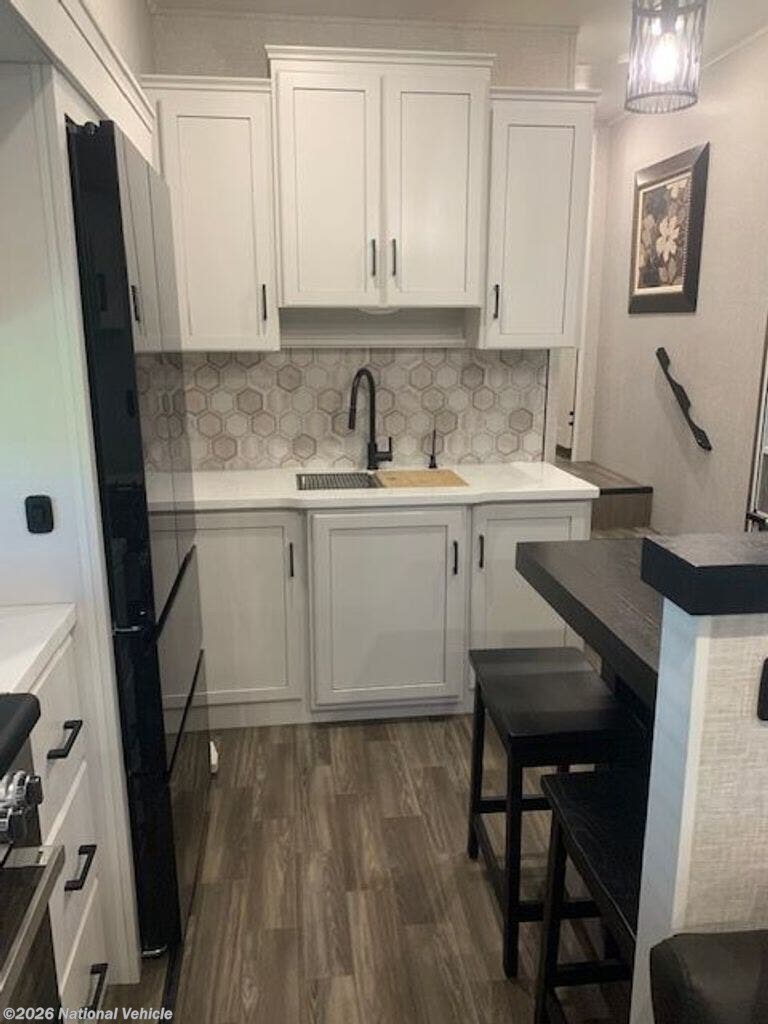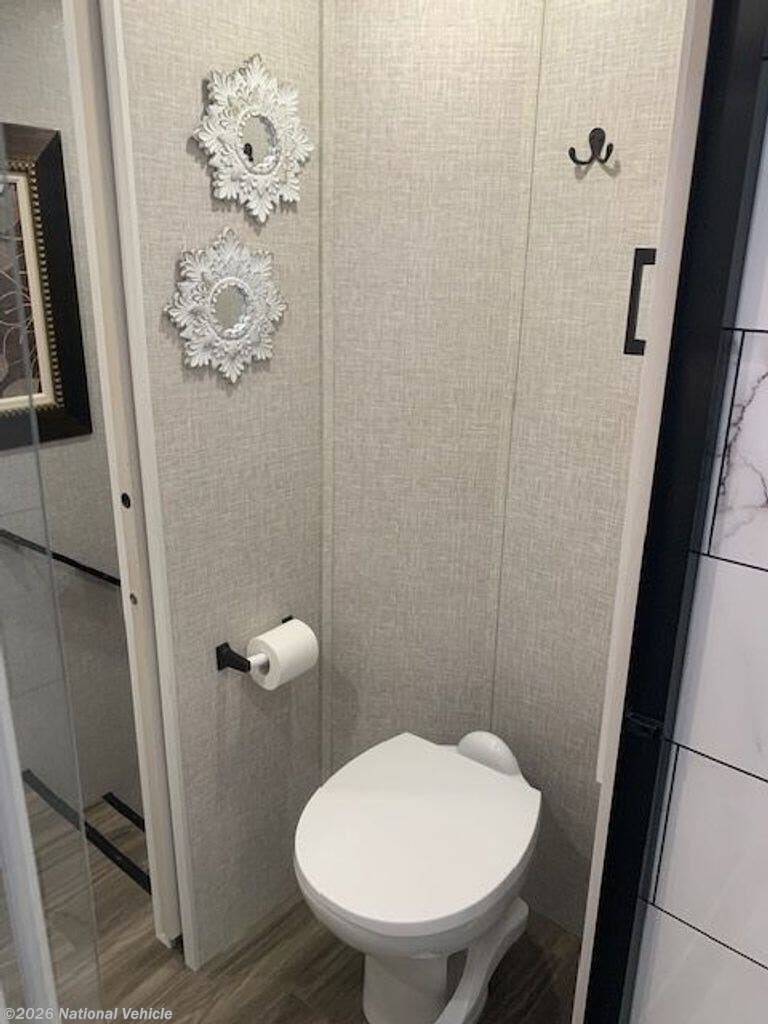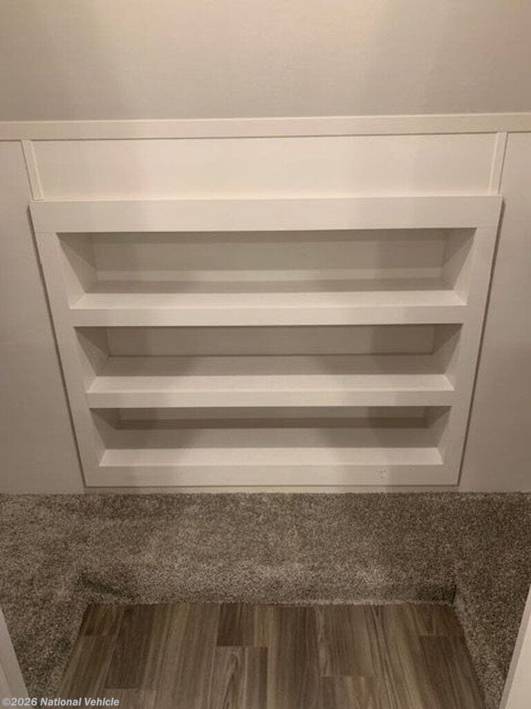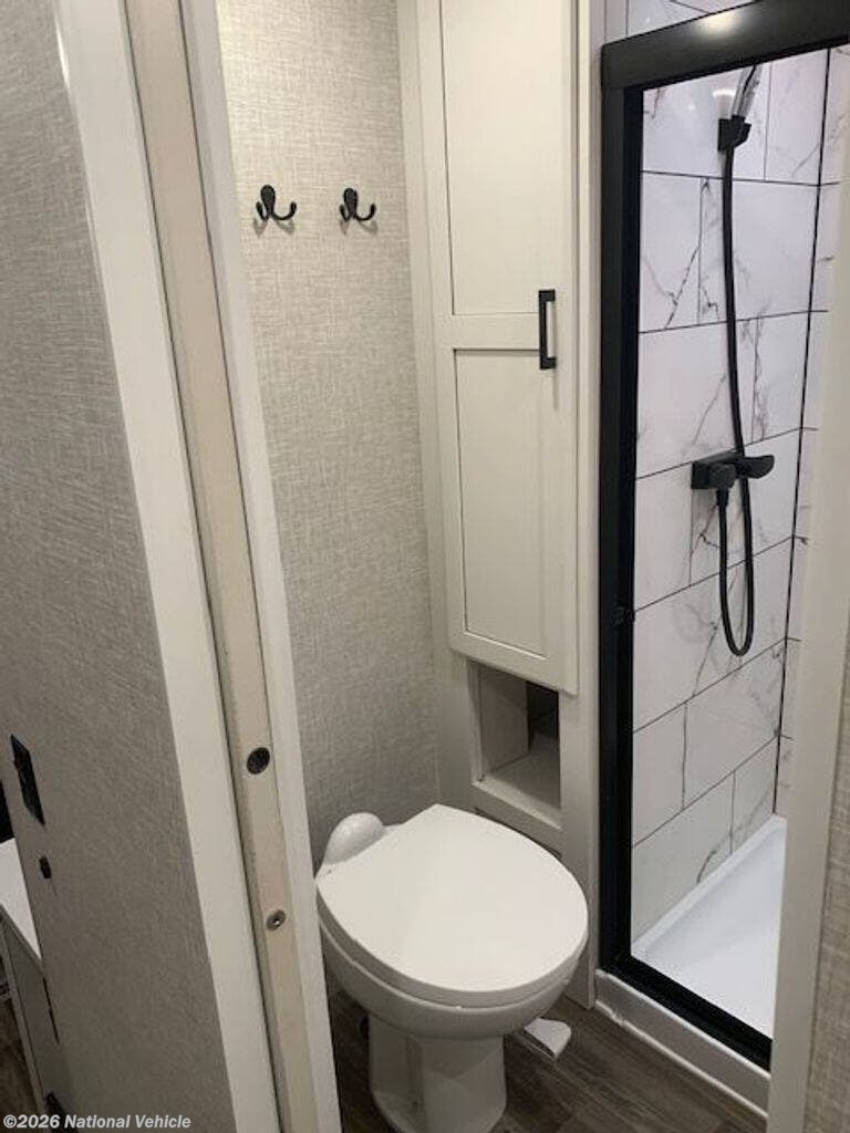 Inside, you?ll find a spacious rear-den floorplan with residential-style seating, perfect for entertaining or relaxing after a day of adventure. The living area features plush furnishings, large panoramic windows, and a warm, inviting atmosphere. The king-size bed, complete with factory bedspread, ensures restful nights, while abundant storage throughout makes extended trips effortless.