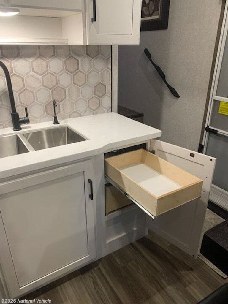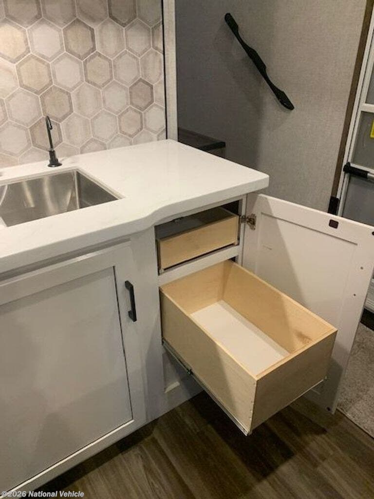 Enjoy the convenience of automatic leveling, allowing quick and easy setup at any campsite. The kitchen is fully appointed for serious cooking, while the outdoor kitchen area remains unused, preserving it in like-new condition for the next owner. Also 2" receiver hitch for towing bikes etc...
