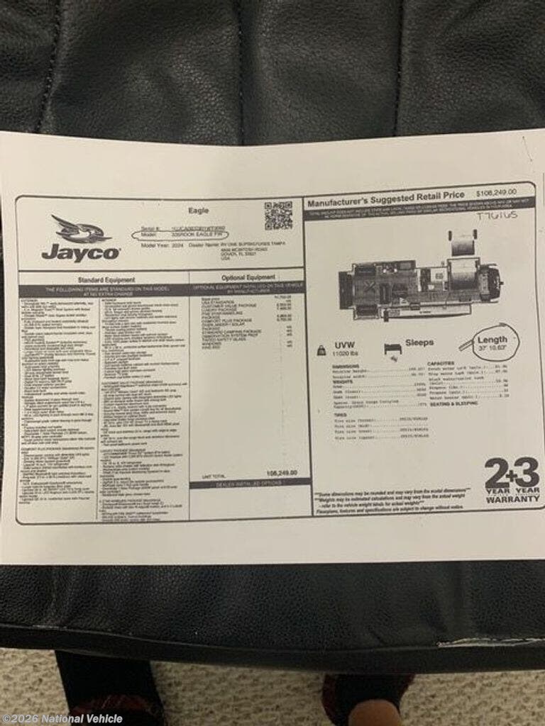 Experience residential luxury on the road with this 2024 Jayco Eagle 335RDOK, a fifth wheel designed for comfort, style, and extended stays. With an original MSRP of $108,249 and a base price of $81,750, this coach is loaded with premium factory upgrades totaling $26,499, making it an exceptional value for buyers seeking high-end amenities without the new-unit price tag.