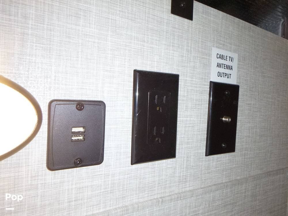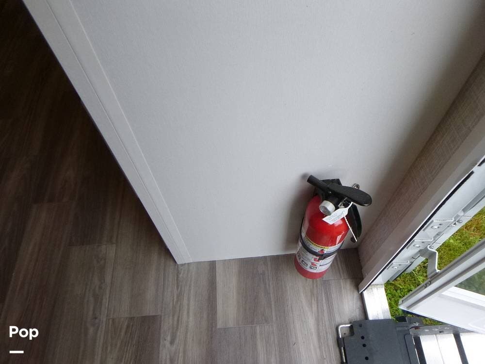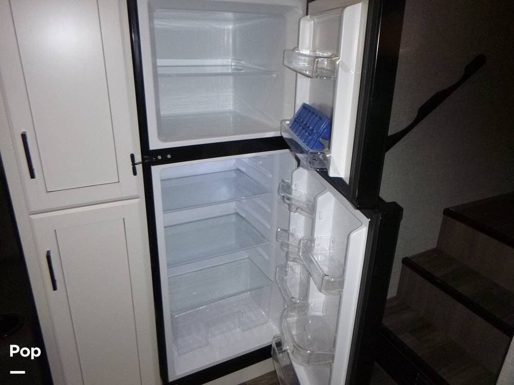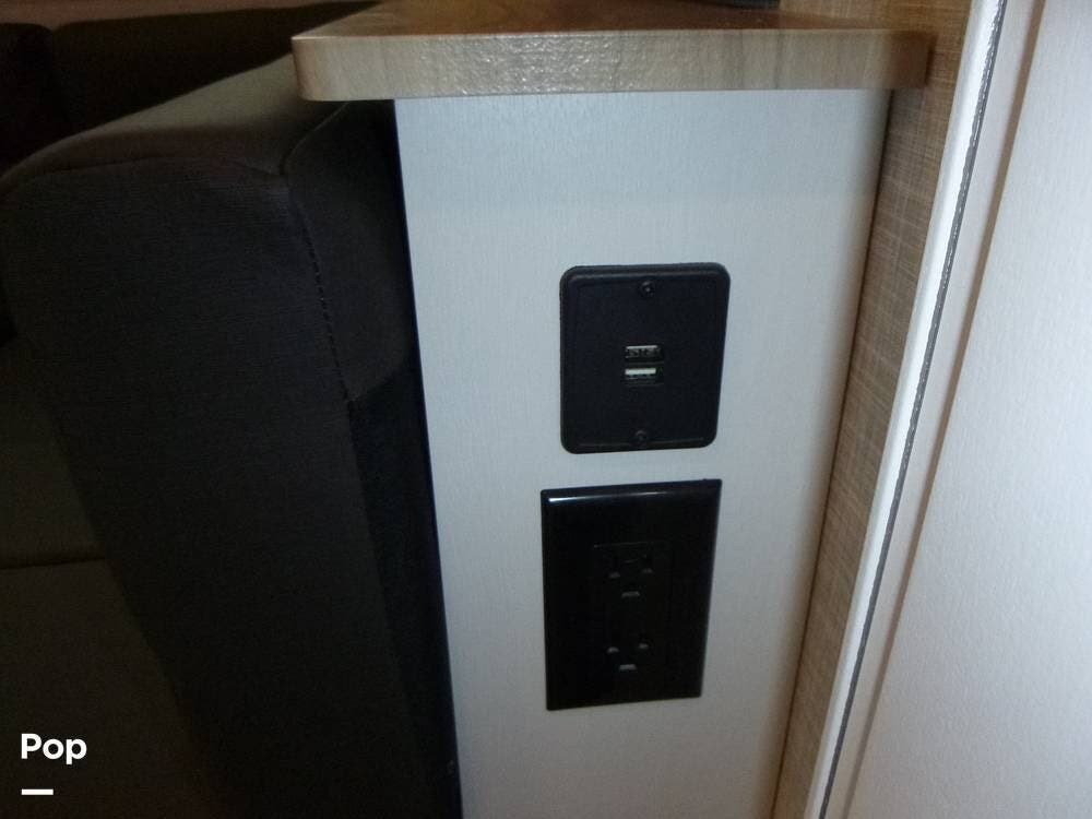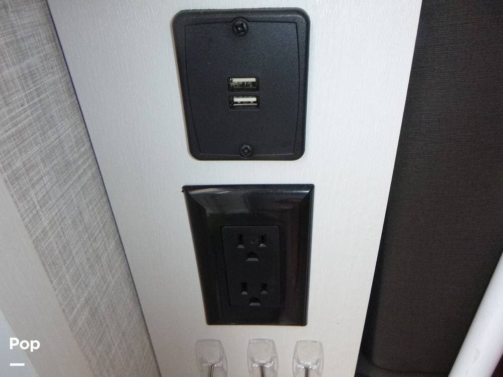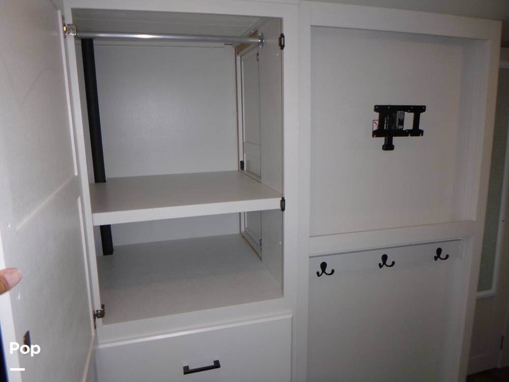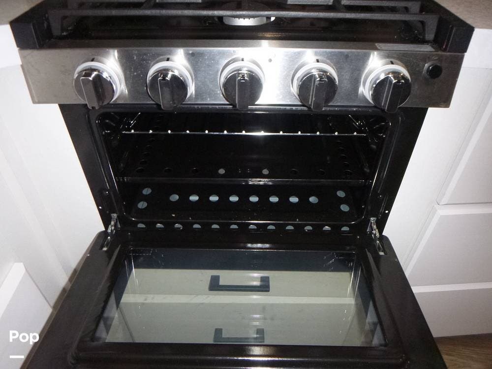 The living space is warm and inviting, featuring theater seating and a cozy dinette, perfect for family meals, game nights, or curling up with a movie after a day outdoors. At night, retreat to your private master bedroom, complete with a comfortable walk-around queen bed and ample storage for everything you bring along.
