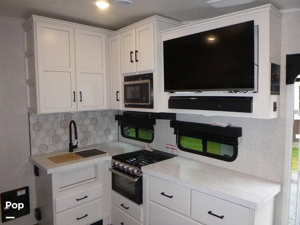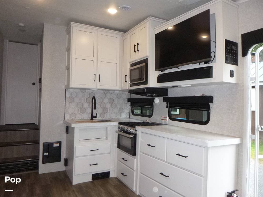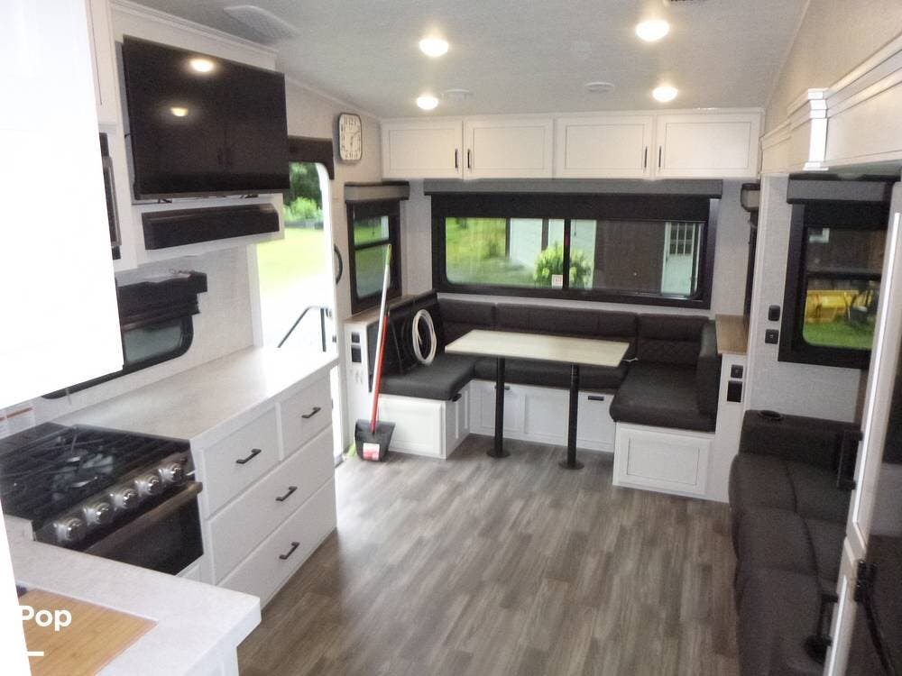 Every detail, from the residential-style bathroom to the elegant finishes, is designed to make you feel at home no matter where you park. And with Jayco's reputation for quality and the ease of towing a half-ton-friendly fifth wheel, your travels are as stress-free as they are memorable.