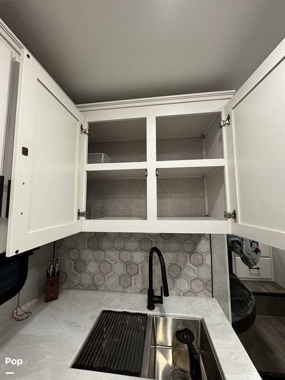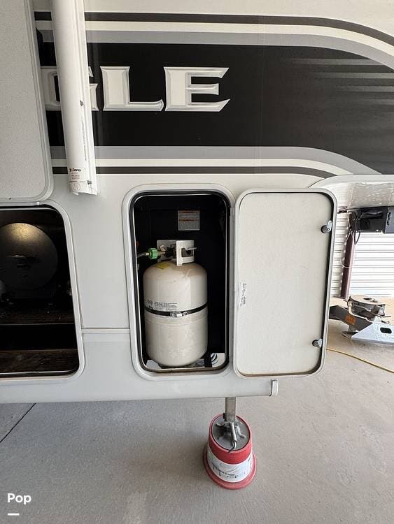 This fifth wheel just doesn't stop with the features! There is a Climate Shield heated and enclosed underbelly, and a tankless on-demand water heater.