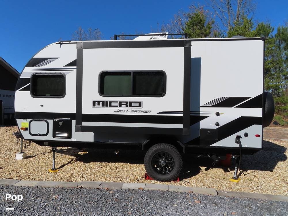 This 2024 Jay Feather Micro is an awesome little unit that can go anywhere--and it's so much better than tent camping! It is Jayco's entry-level, lightest travel trailer offering. It can be towed by most mid-sized tow vehicles, including SUVs.