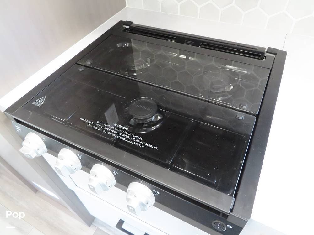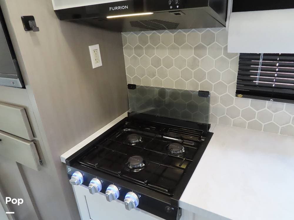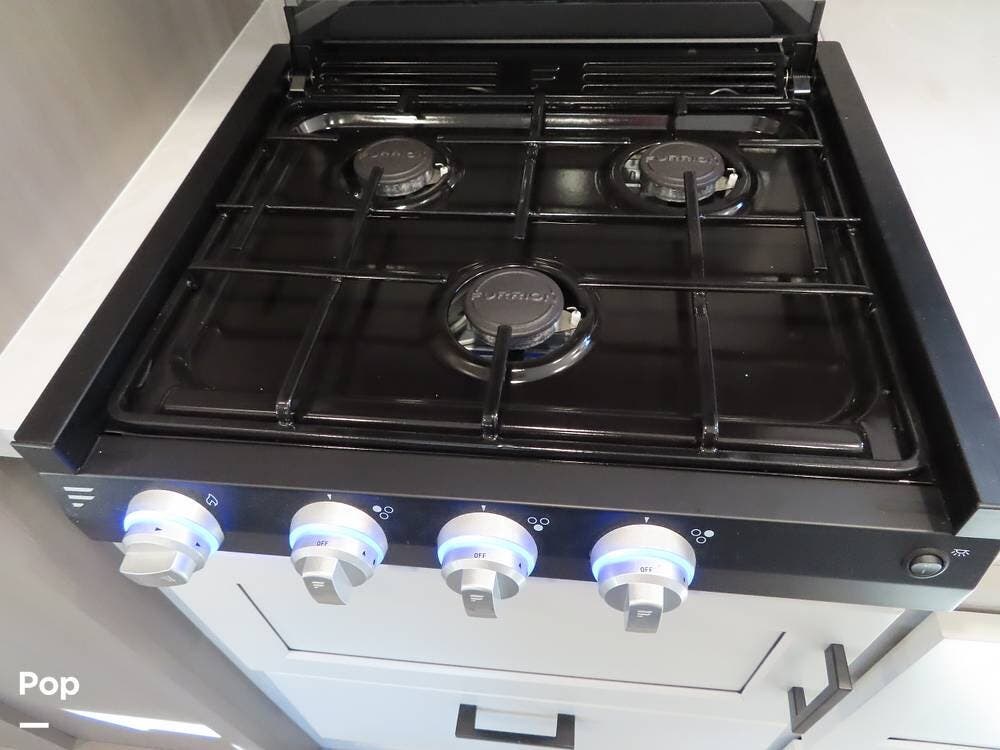 The refrigerator/freezer and pantry are amazingly large for a unit of this size! The 3-burner stove has never been used. There is also a exterior griddle with a connection outside.