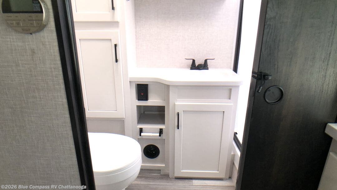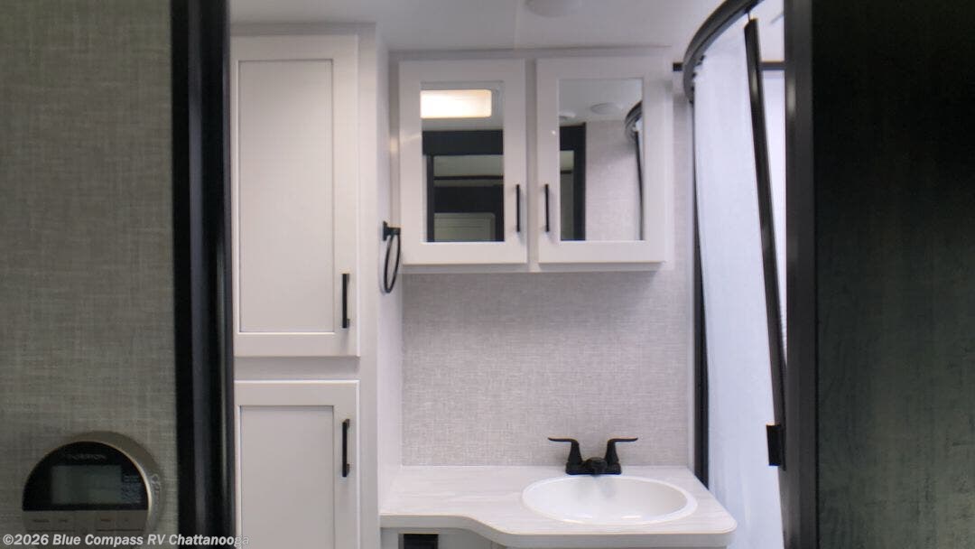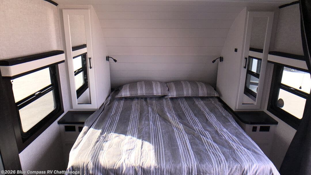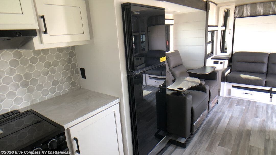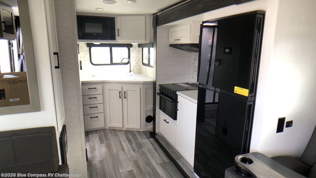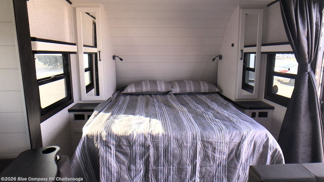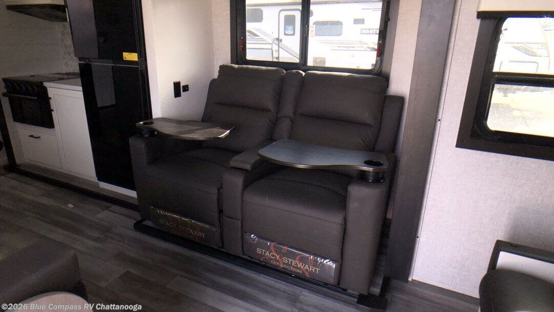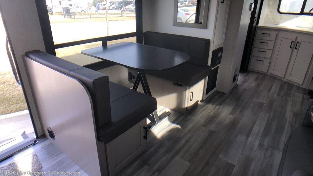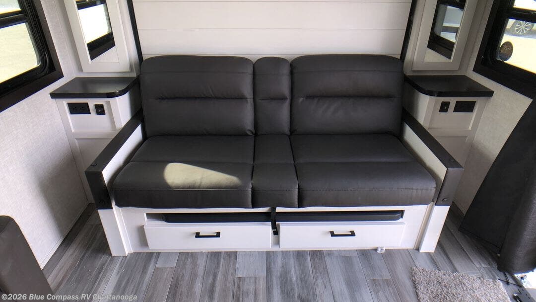If you wish to escape the hustle and bustle of everyday life then you need this travel trailer! It features a front 60" x 75" Murphy bed with wardrobes on either side for bedtime and a jackknife sofa during the day. You can play games at the booth dinette after enjoying a delicious meal prepared with the three burner cooktop or relax at the theater seating with table trays and enjoy the LED TV. The rear corner bathroom has a tub/shower for you to get cleaned up in, as well as a linen closet to store your towels. There is exterior storage space to keep your outdoor gear, a 15' power awning to protect you from the elements, and an exterior griddle with LP quick connect!