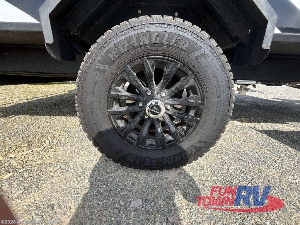 Jayco's lightest travel trailer, the Jay Feather Micro is ready for adventure at the drop of a hat! The Climate Shield weather protection will let you camp well into the colder months and the Stronghold VBL with double-sized Azdel is ultra durable. The Jay Pro Package includes 16-inch American-made Goodyear off-road tires with self-adjusting brakes, a rear-mounted roof ladder, and the Overlander 1 Solar Package with a 200W solar panel. Additional exterior features include marine grade exterior speakers with blue LED accent lighting, a swing-out entry door assist handle, a power tongue jack, and more! Inside, you will love the 4-inch high-density dinette cushions with vinyl backing for easy cleaning, along with the handcrafted hardwood door/drawer fronts, residential style kitchen countertops, and decorative roller shades with a reflective barrier for better insulation.