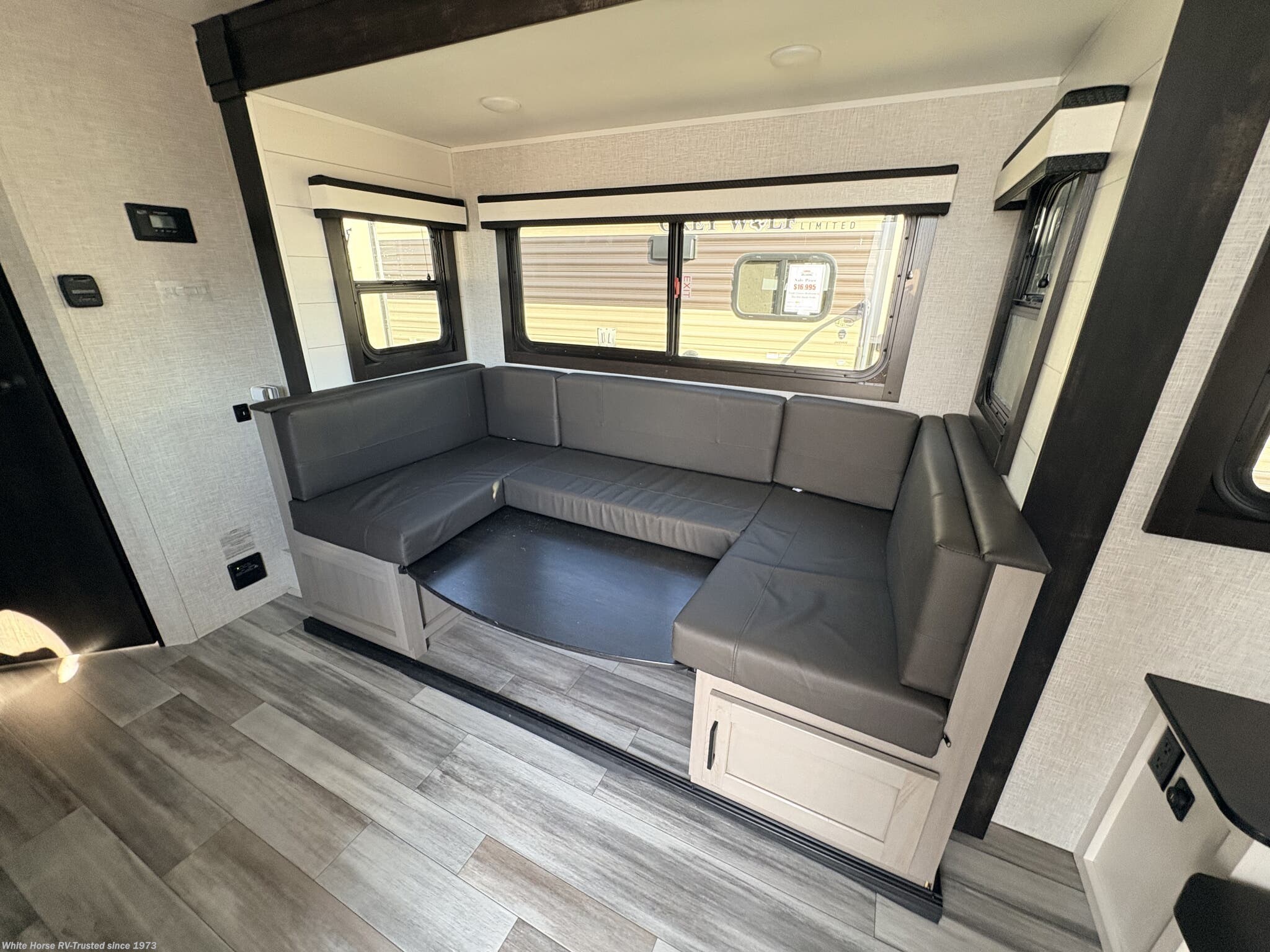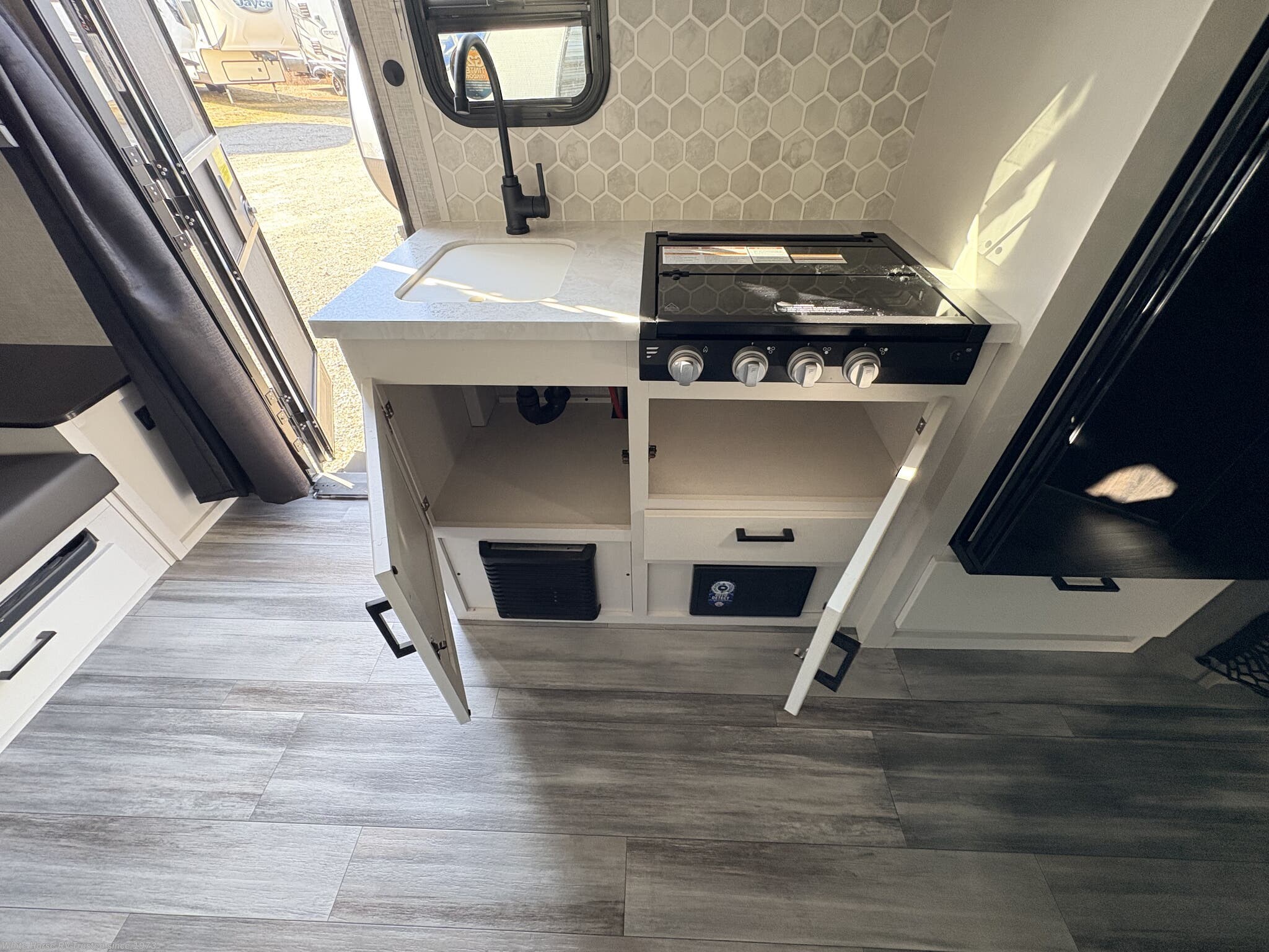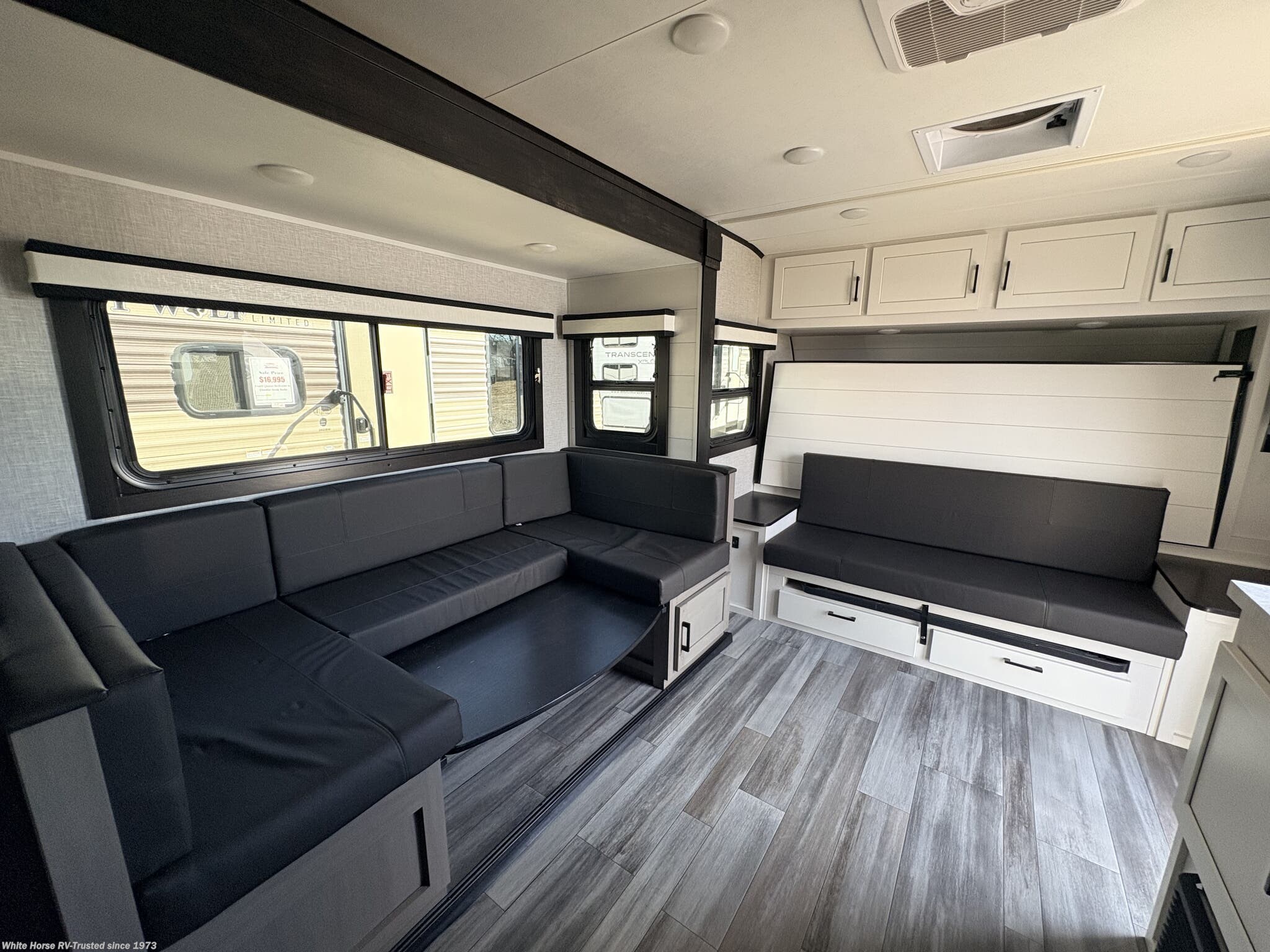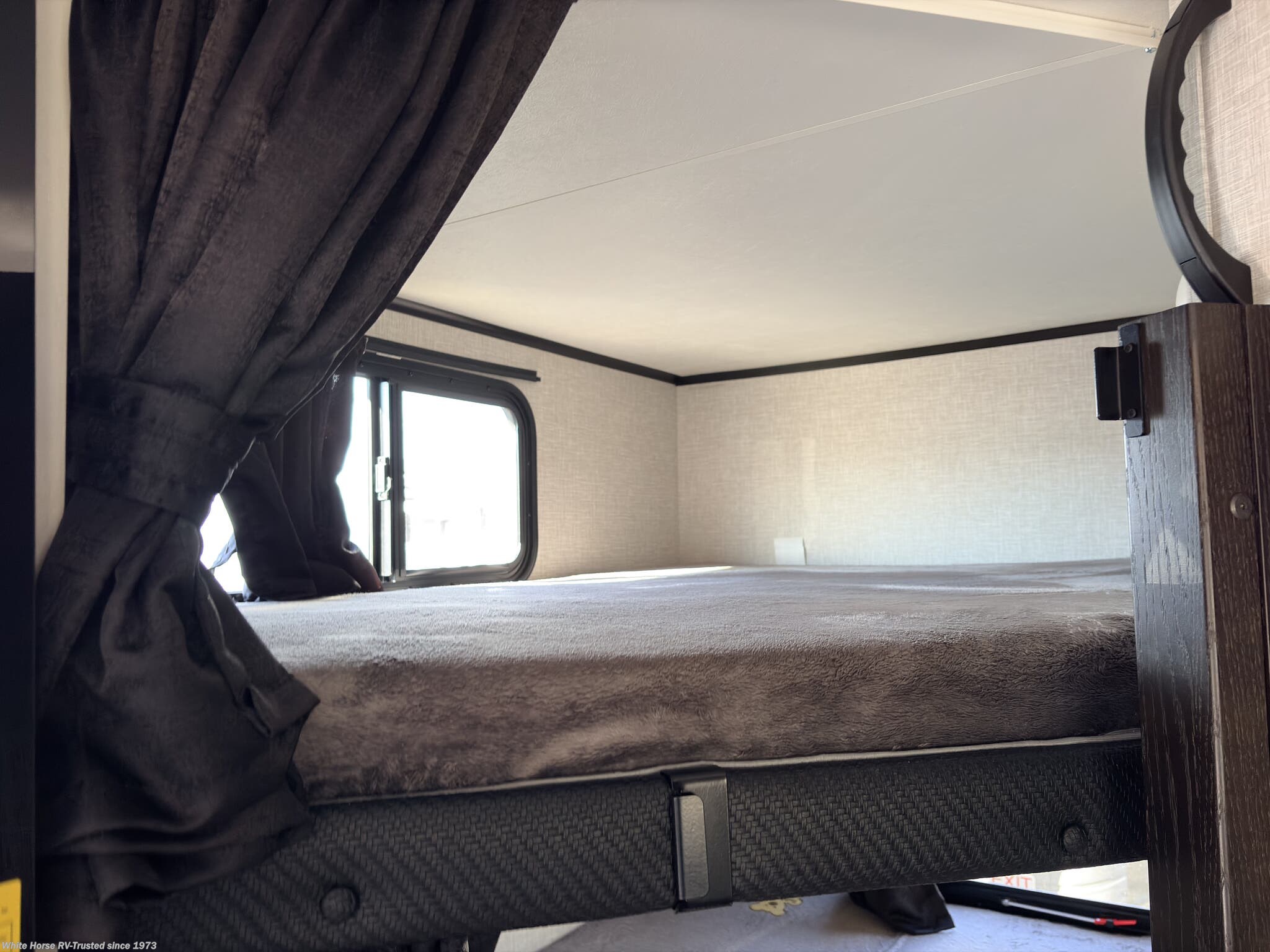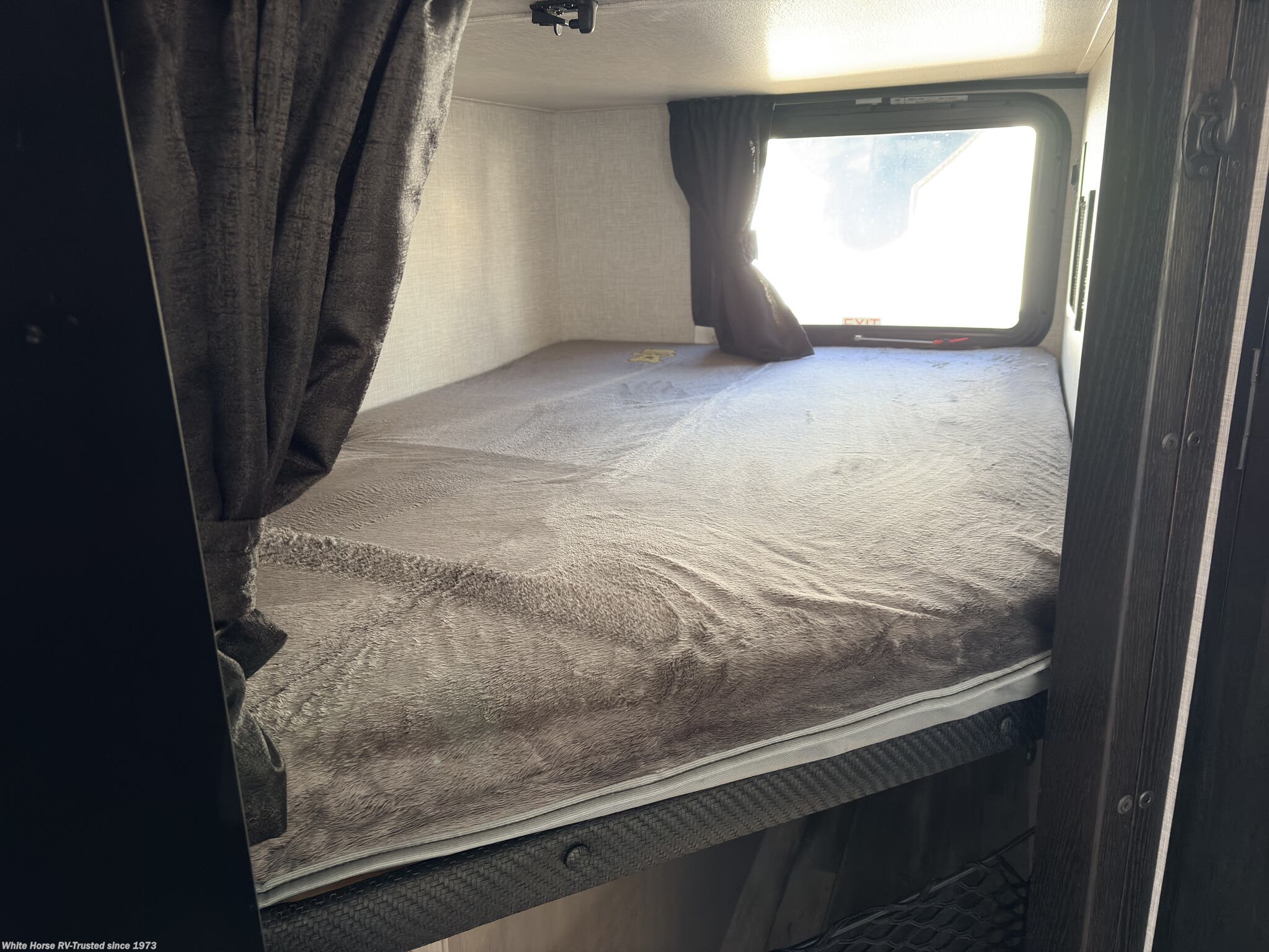 This bunkhouse-oriented floorplan is built for family versatility. It features bunk beds for gracious kids’ space, a Murphy bed that combines sleeping and living space, and a queen bed . The layout also includes a cozy U-shaped dinette and a front bedroom area, plus an outdoor kitchen for snacks and easy entertaining. With up to seven sleepers, this RV is ideal for active families who want to travel light without sacrificing comfort.