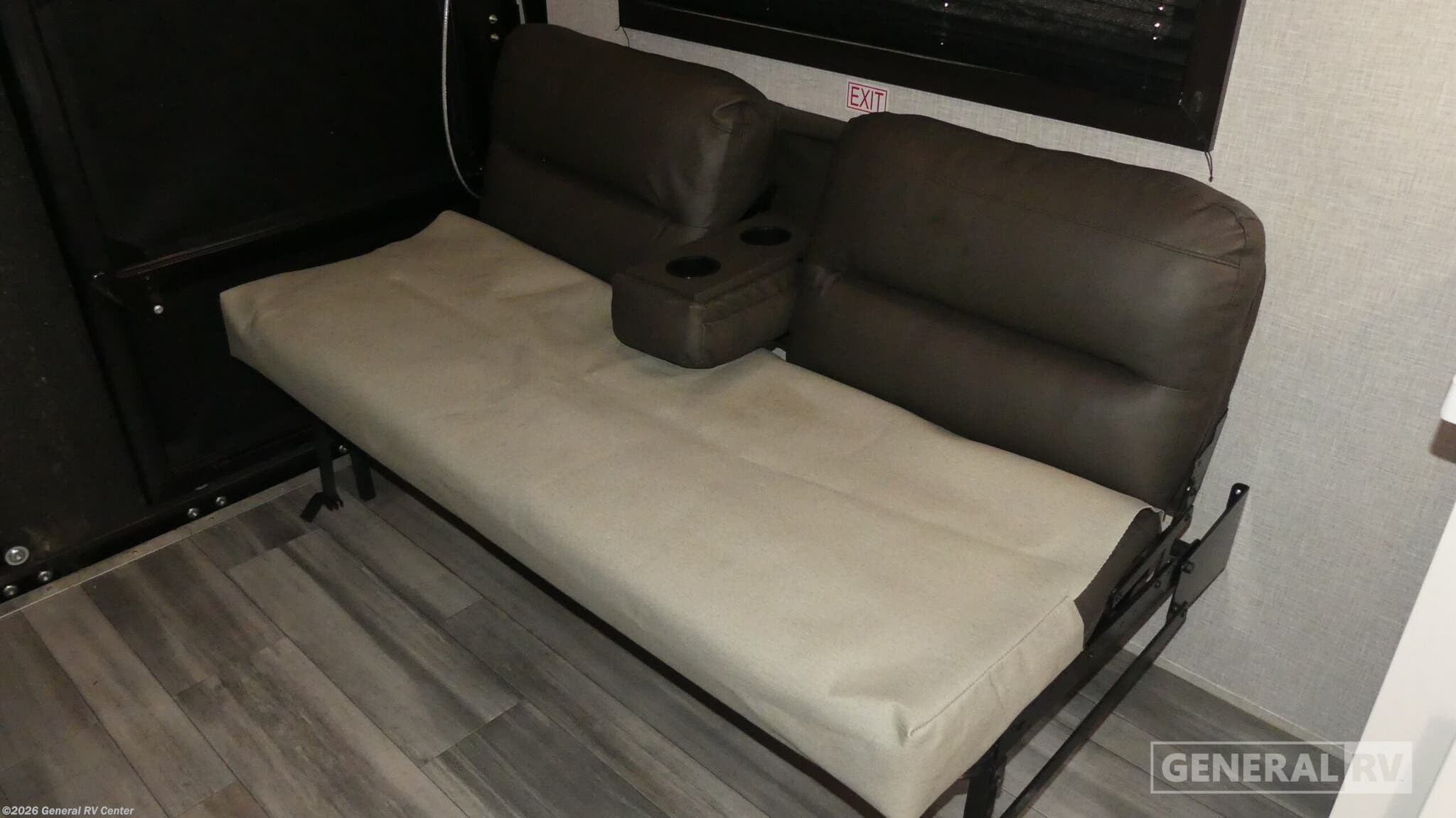 **Jayco Jay Flight toy hauler 265TH highlights:** - 5' 11" Cargo Area - 7' Ramp w/ Spring Assist - Flip-Up Bar Top w/Stools - Convertible Sofas - Double Entry Bathroom - Entertainment Center When you are ready to ride your off-road toys, relax in the great outdoors and unwind after a ride and do it all over again the next day, then load up and head to the campsite! You will have 5' 11" of cargo space plus a little more space in between the kitchen amenities and the flip-up bar top with stools to load more gear and such. The 7'3" opening and 7' ramp door makes unloading easy as well. The convertible sofas and removable table allow more to dine, and the double entry bathroom will keep everyone clean before bedtime. The front bedroom offers privacy for the owners, and comfortable nights on a queen bed. And the power awning offers shade during the daytime when you want to relax outside. These Jayco Jay Flight toy hauler have been a family favorite for years with their lasting power and superior construction. An integrated A-frame and magnum truss roof system holds them together. When you tow one of these units you're towing the entire unit and not just the frame. With dark tinted windows, you have more privacy and safety. The vinyl flooring throughout will be easy to clean and maintain too. Come find your favorite model today!