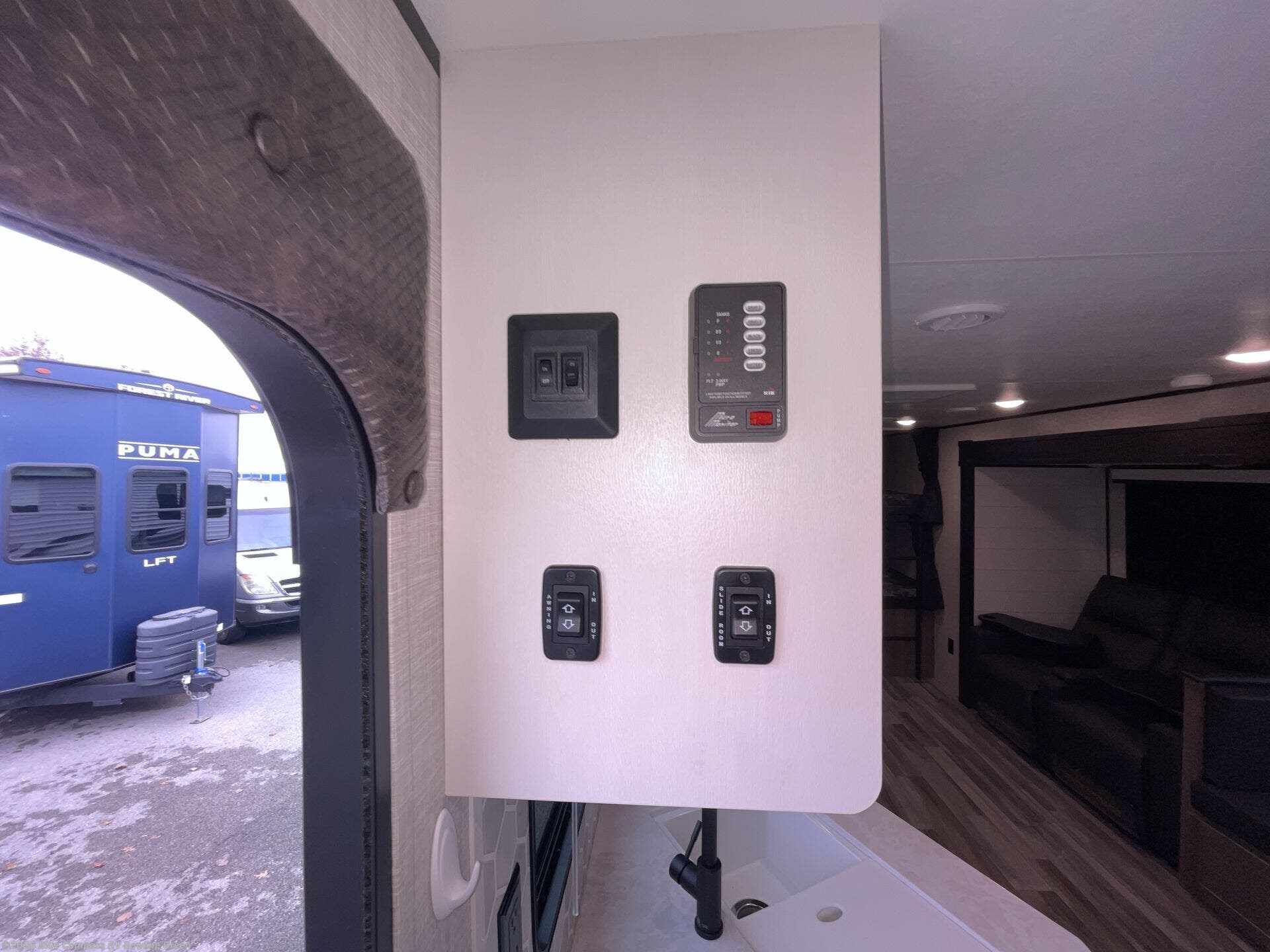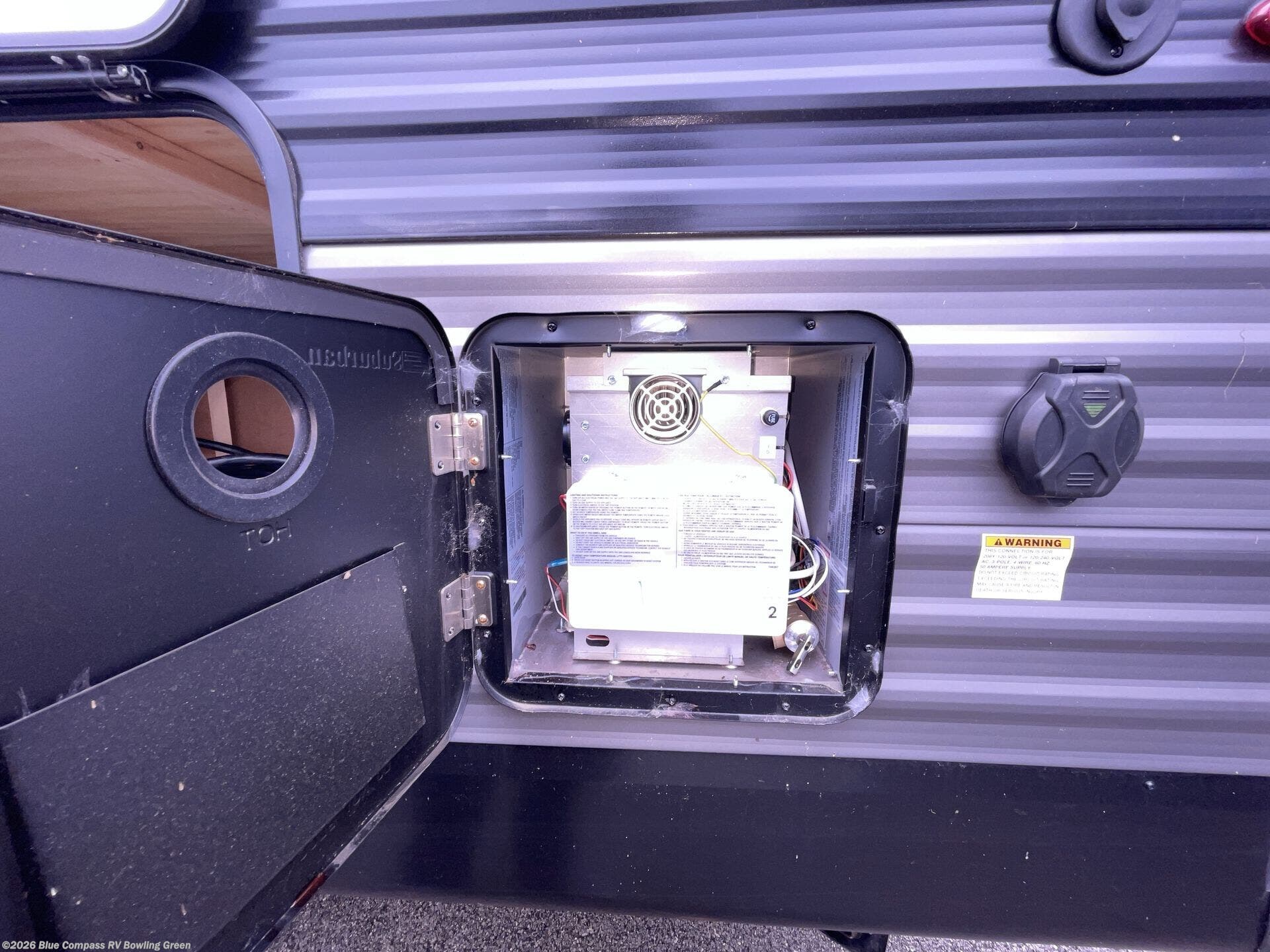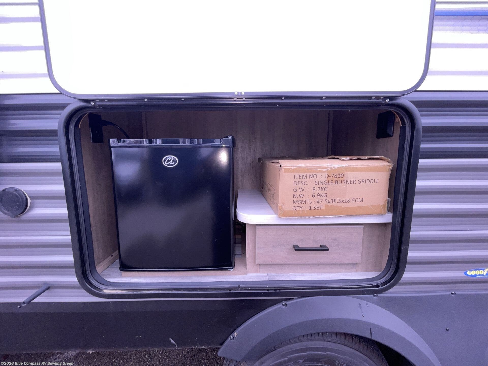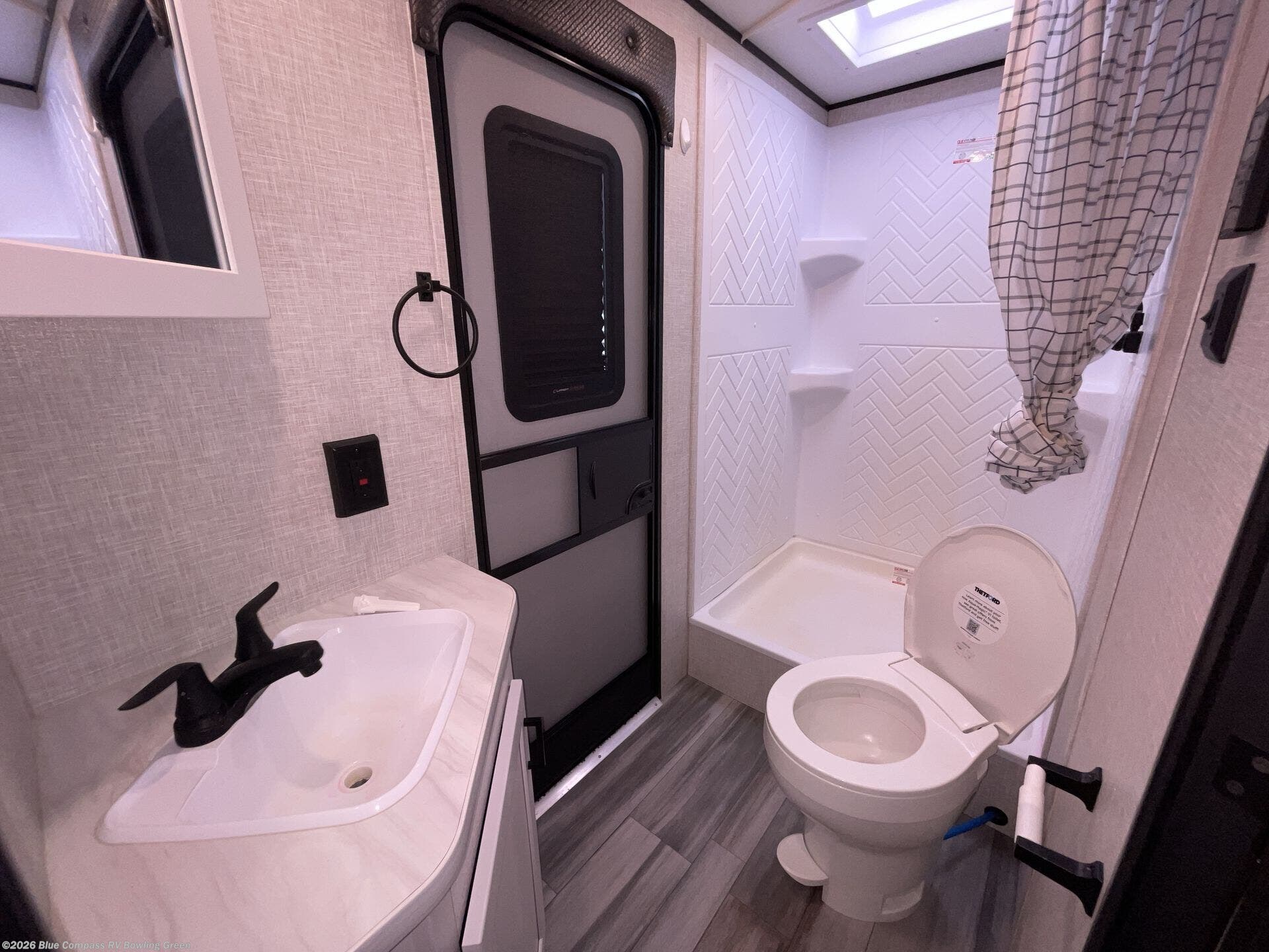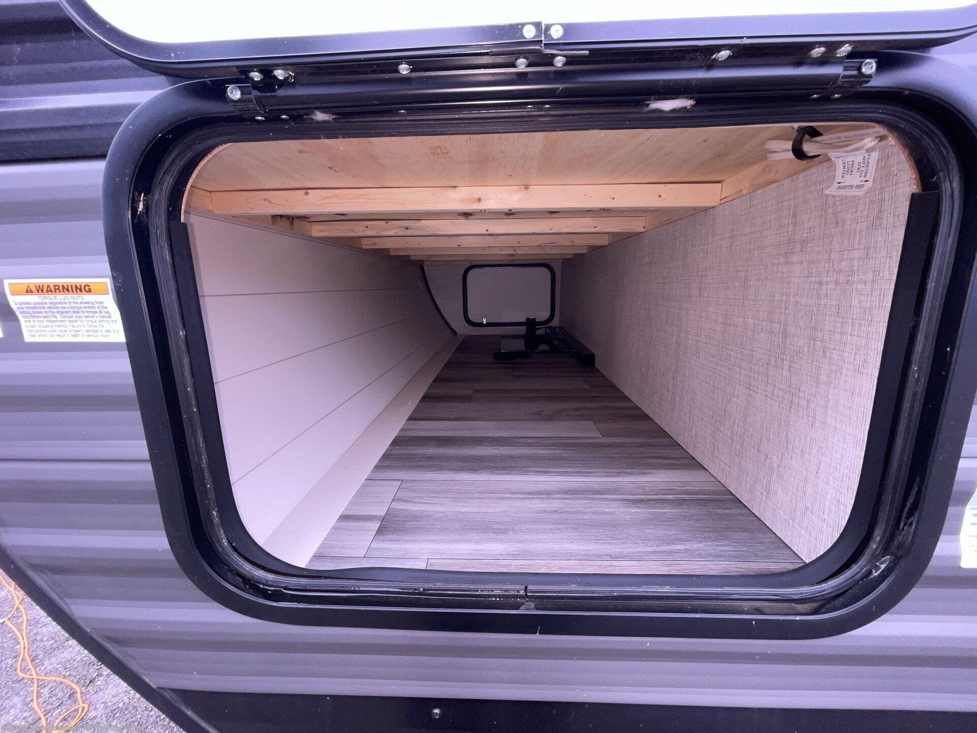 The whole family can get together in this travel trailer! You can sleep on the queen bed in the front private bedroom and the kids can sleep on the 48" x 80" bunk beds with a ladder. The dual entry rear corner bathroom is easy to access even from the outside with one of the dual entry doors to the unit. With a booth dinette and jackknife sofa slide, you will have more walking around space. There is even a bench with storage to keep your shoes out of the way. You also have an outside refrigerator to enjoy a cold beverage without having to go back inside!