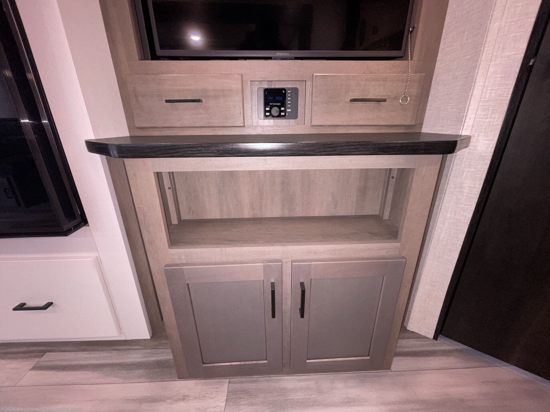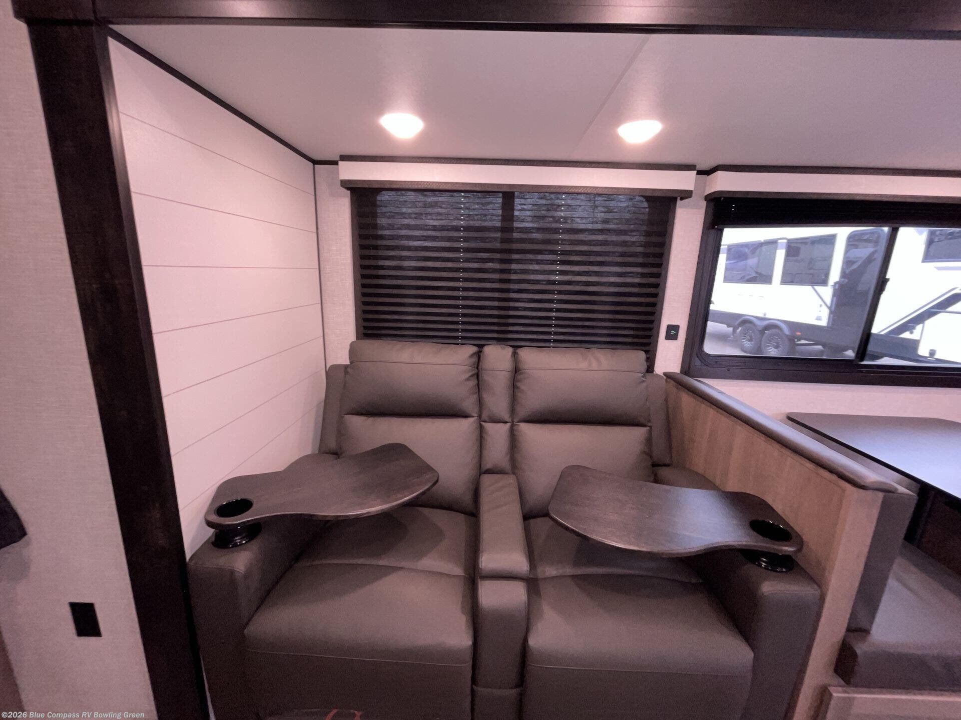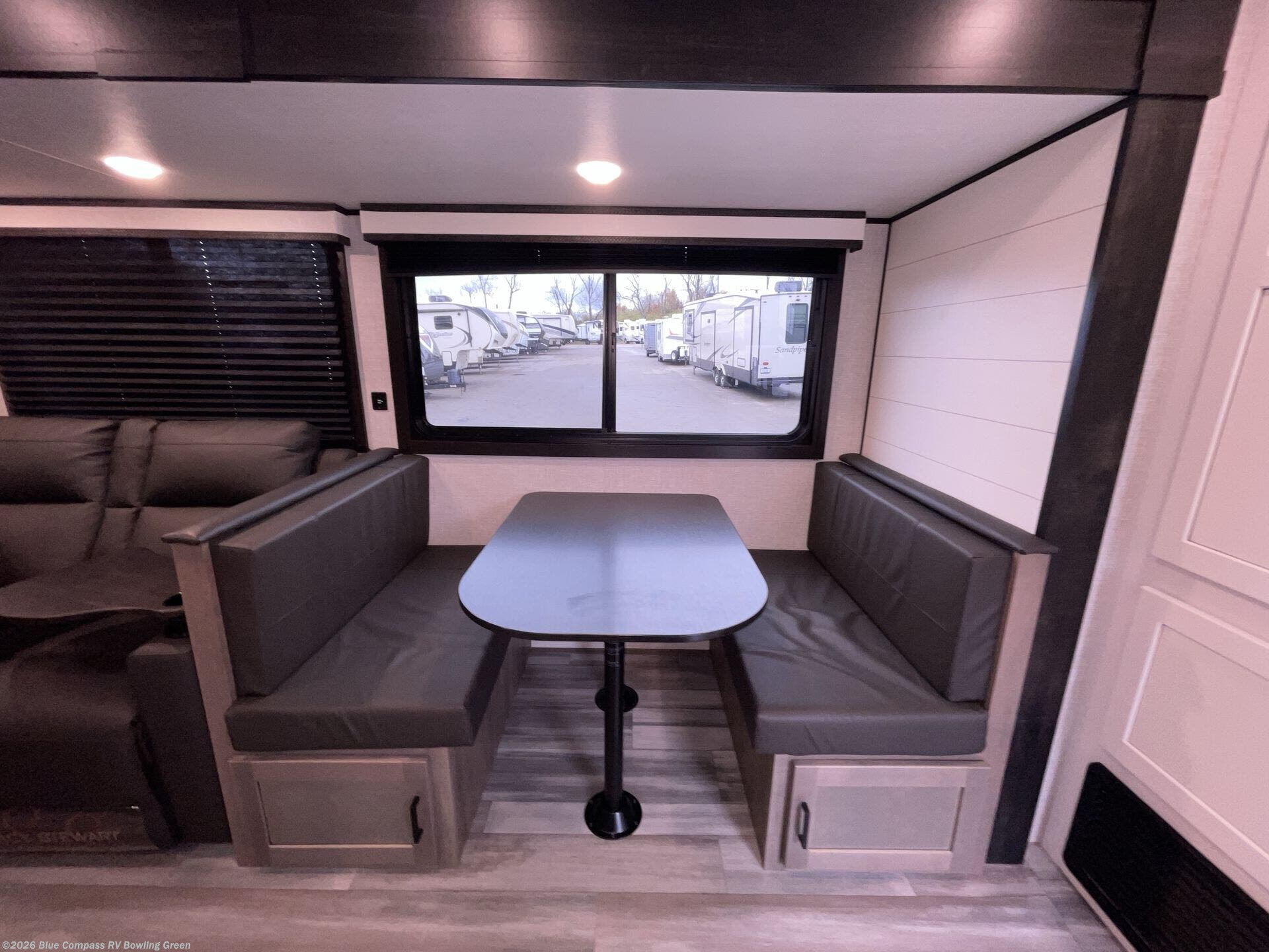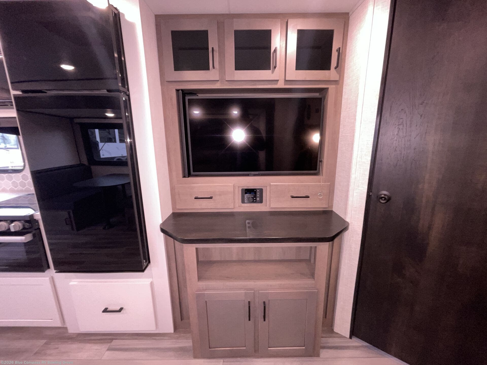 The whole family can get together in this travel trailer! You can sleep on the queen bed in the front private bedroom and the kids can sleep on the 48" x 80" bunk beds with a ladder. The dual entry rear corner bathroom is easy to access even from the outside with one of the dual entry doors to the unit. With a booth dinette and jackknife sofa slide, you will have more walking around space. There is even a bench with storage to keep your shoes out of the way. You also have an outside refrigerator to enjoy a cold beverage without having to go back inside!