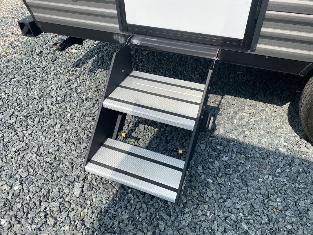 Gain some freedom to travel with this Jay Flight SLX travel trailer! You can rest comfortably each night on an RV queen bed that can be sectioned off into a semi-private bedroom with a privacy curtain. There is a private bathroom with a tub/shower and toilet so that you can stay clean, and the kitchen has a two-burner range and microwave oven for all of your inside cooking needs. Outside, there is a 13' power awning to protect you from too much sun, and you can also store extra gear in the exterior storage compartment which is quite handy.
