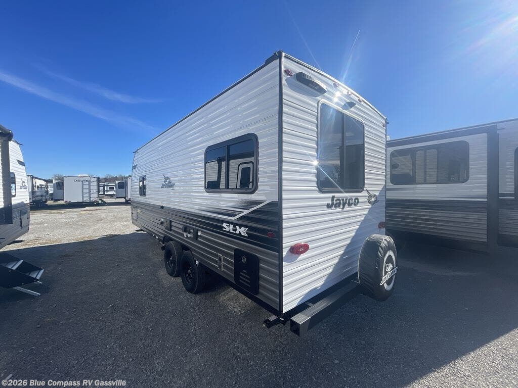 The Jayco Jay Flight SLX travel trailer is quite easy to own because it is lightweight for an easier towing experience. Built on a fully integrated A-frame with galvanized-steel, impact-resistant wheel wells, the Jay Flight SLX has quality at its very foundation. That quality continues on to the electric self-adjusting brakes, easy-lube hubs, Magnum Truss roof system, and LP quick connect. Some of what the mandatory Customer Value Package includes backup camera prep, Keyed-Alike entry and baggage doors, marine grade exterior speakers, and an on-demand tankless water heater. The optional STX Edition for Indiana built units only and the optional Baja Package built for Idaho units only includes Goodyear off-road tires, an enclosed underbelly, a deluxe graphics package, and a wide-stance axle to name a few features.