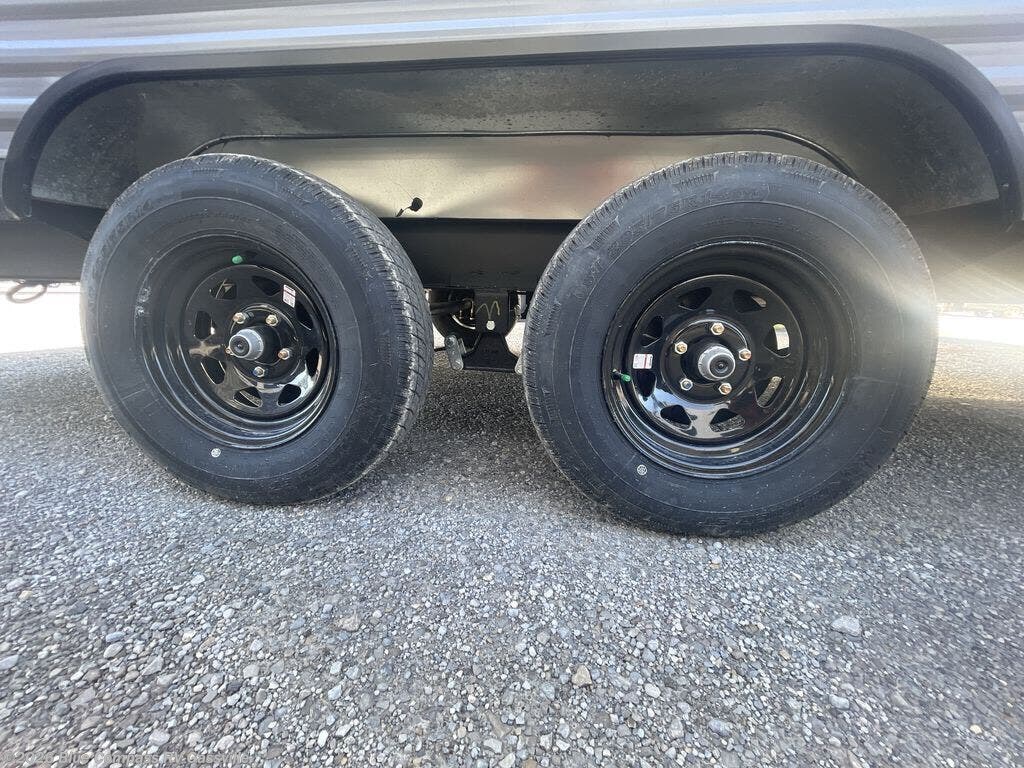 The Jayco Jay Flight SLX travel trailer is quite easy to own because it is lightweight for an easier towing experience. Built on a fully integrated A-frame with galvanized-steel, impact-resistant wheel wells, the Jay Flight SLX has quality at its very foundation. That quality continues on to the electric self-adjusting brakes, easy-lube hubs, Magnum Truss roof system, and LP quick connect. Some of what the mandatory Customer Value Package includes backup camera prep, Keyed-Alike entry and baggage doors, marine grade exterior speakers, and an on-demand tankless water heater. The optional STX Edition for Indiana built units only and the optional Baja Package built for Idaho units only includes Goodyear off-road tires, an enclosed underbelly, a deluxe graphics package, and a wide-stance axle to name a few features.