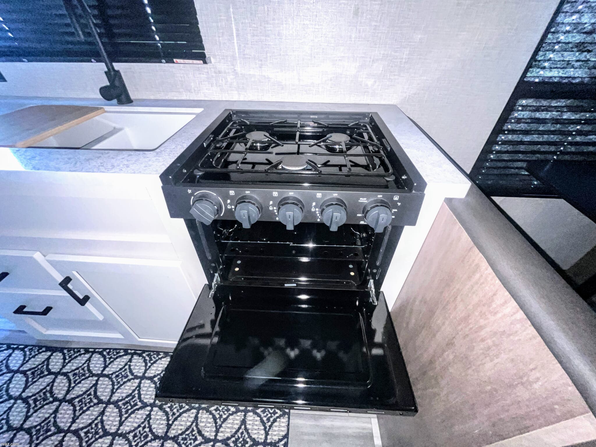 Additional features enhance your outdoor experience, including an awning to provide shade during sunny days and exterior speakers to enjoy your favorite tunes al fresco. Leveling jacks ensure stability at campsites, and roof vents facilitate proper ventilation for a fresh and airy interior environment.
