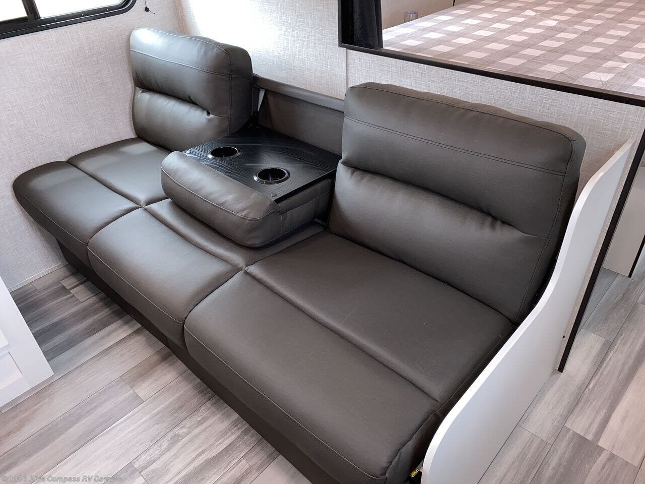 You can comfortably sleep up to 10 people in this trailer thanks to the double-size bunks, the RV queen bed in the front bedroom, plus the booth dinette and jack-knife sofa in the main living area! The chef of your crew will have a three burner cooktop and microwave oven to prepare meals, and everyone can store their favorite drinks in the 8 cu. ft. 12V refrigerator. The bathroom includes a tub/shower and a toilet, with the sink just outside of this room so others can brush their teeth if one is taking a shower before bed. The outside storage will let you bring along fishing poles and the 16' power awning with LED lights will create a nice place to gather in the evenings!