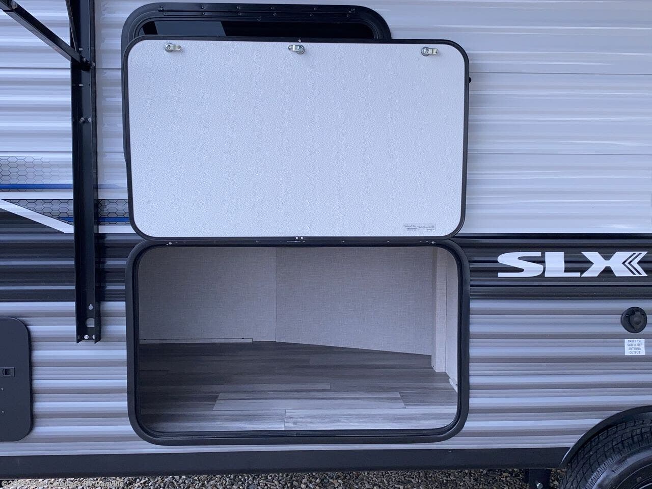 The Jayco Jay Flight SLX travel trailer is quite easy to own because it is lightweight, and it comes with a single axle. Built on a fully integrated A-frame with galvanized-steel, impact-resistant wheel wells, the Jay Flight SLX has quality at its very foundation. That quality continues on to the electric self-adjusting brakes, easy-lube hubs, Magnum Truss roof system, and LP quick connect. Some of what the mandatory Customer Value Package includes backup camera prep, Keyed-Alike entry and baggage doors, marine grade exterior speakers, and an on-demand tankless water heater. The optional STX Edition for Indiana built units only and the optional Baja Package built for Idaho unit only includes Goodyear off-road tires, an enclosed underbelly, a deluxe graphics package, and a wide-stance axle to name a few features.