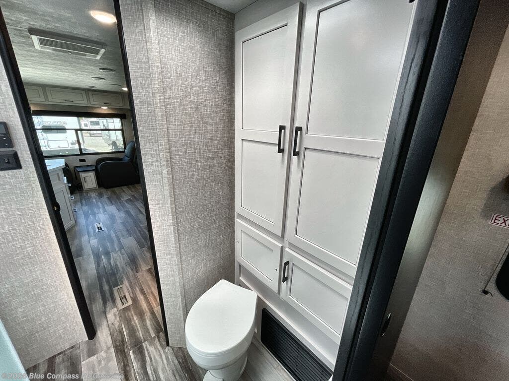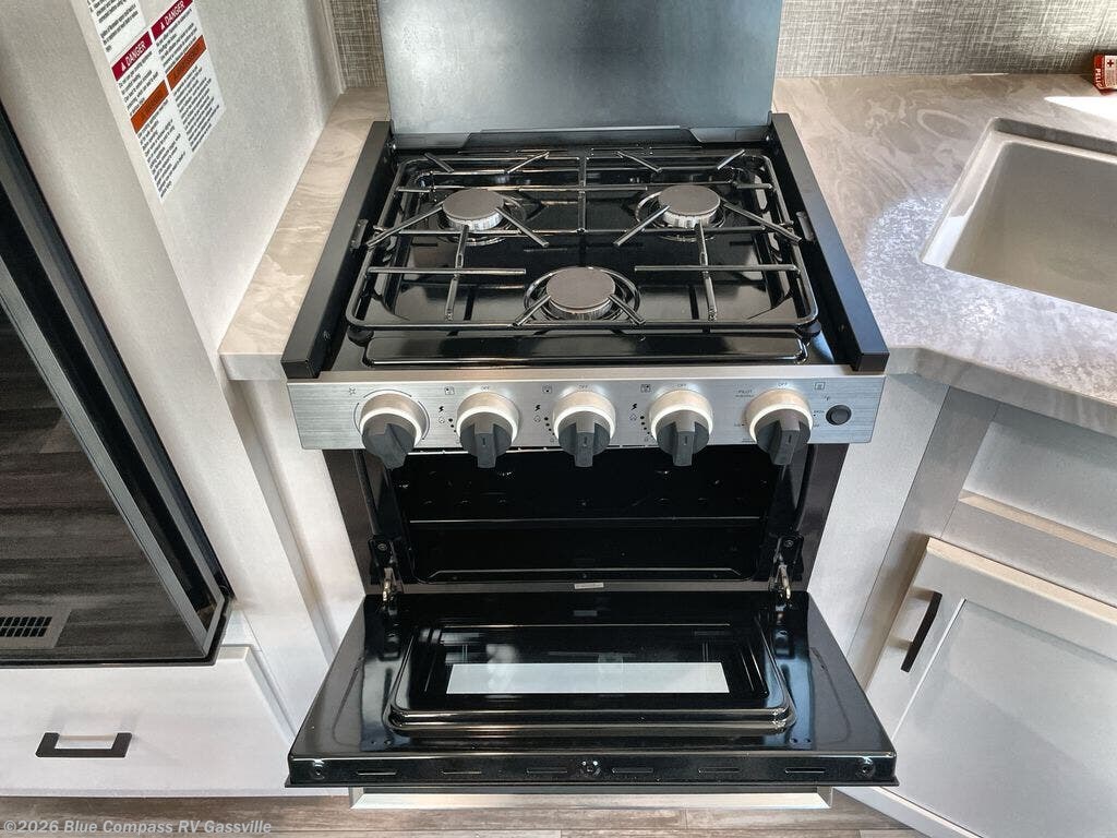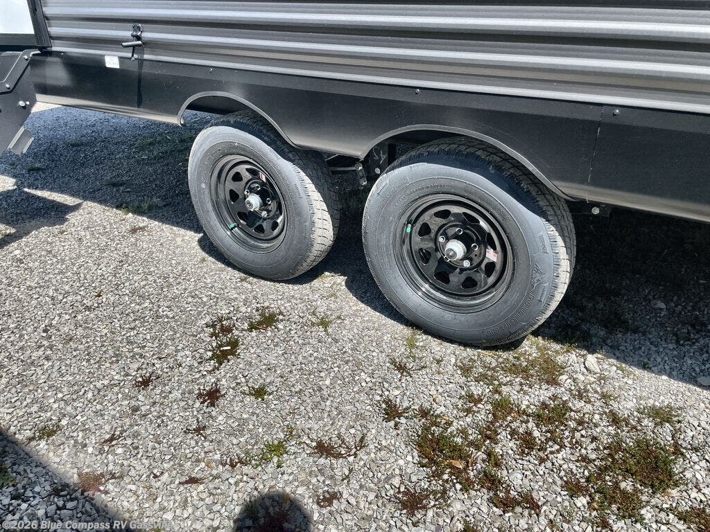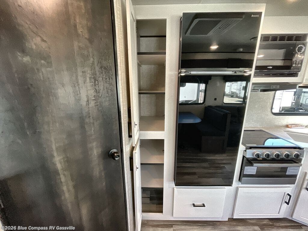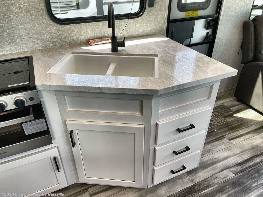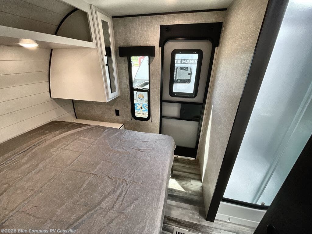 You can comfortably sleep up to six people in this trailer thanks to the RV queen bed in the front bedroom, plus the booth dinette and jack-knife sofa in the main living area! The chef of your crew will have a three burner cooktop and microwave oven to prepare meals, and everyone can store their favorite drinks in the 8 cu. ft. 12V refrigerator. The walk-through bath is spacious and includes a radius shower, toilet, a sink, and linen closet and is the full width of the unit. The outside storage will let you bring along camp chairs and games, fishing poles and more, plus the 18' 3" power awning with LED lights will create a nice place to gather in the evenings!