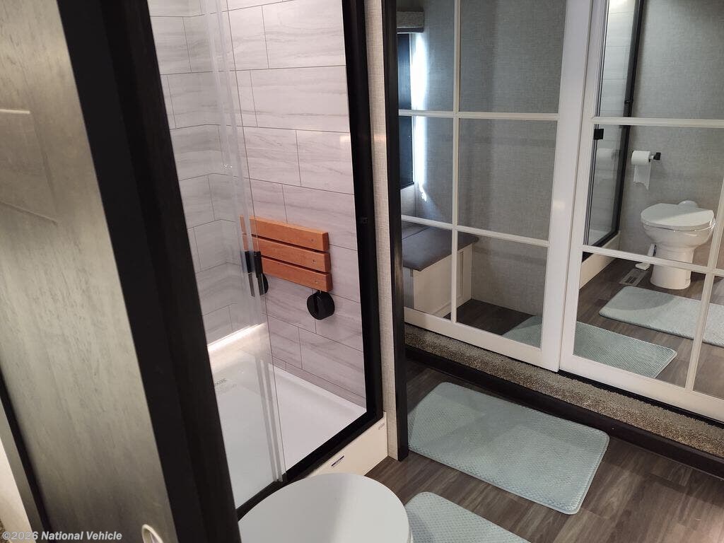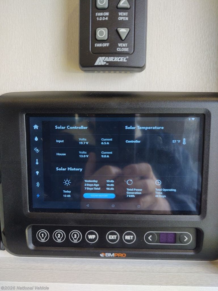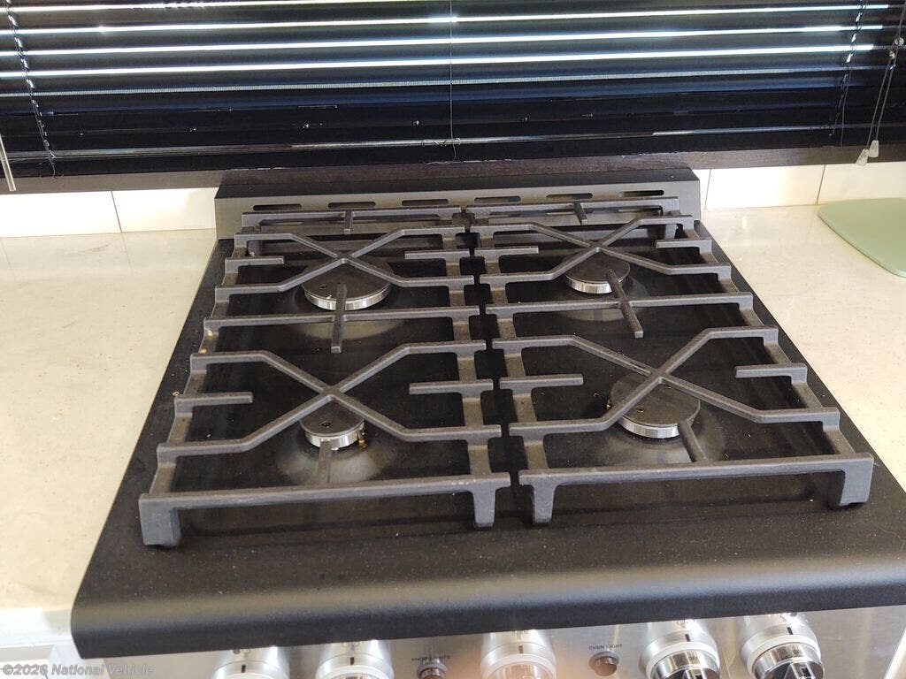 This coach combines modern solar capability, smart RV technology, and practical comfort upgrades that make a real difference in everyday use. The walk-around bed configuration, exterior cooking setup, and solar/inverter system make this unit especially appealing for buyers who want flexibility without sacrificing luxury.