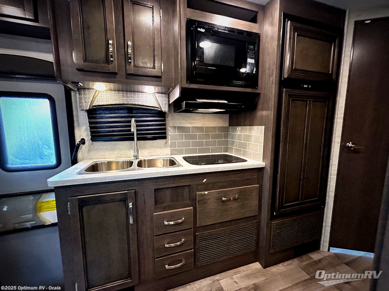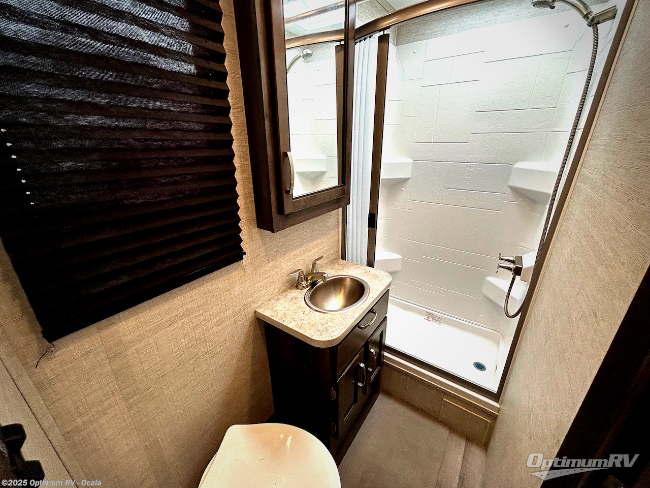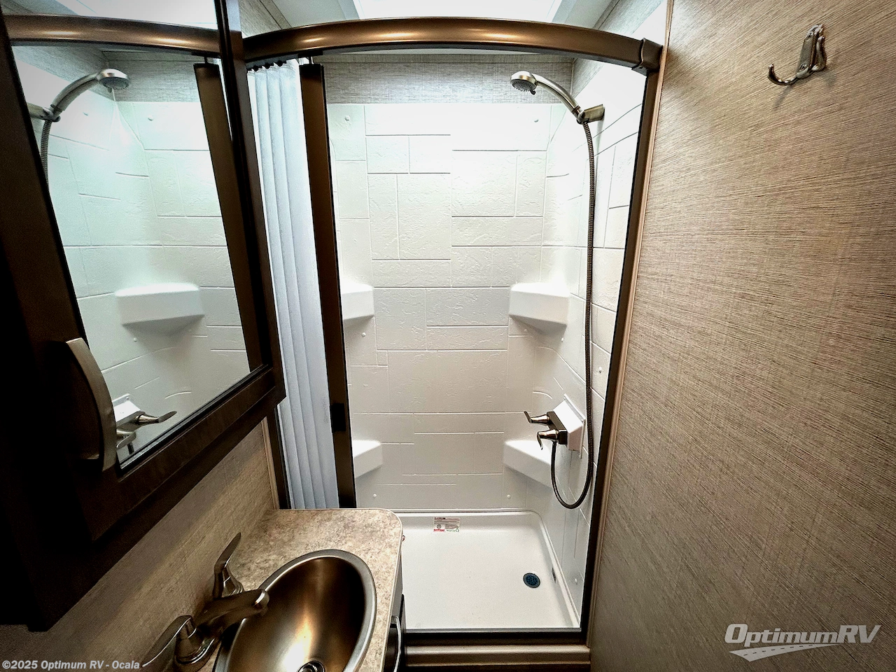 There's a comfortable place to sleep for everyone in this motorhome! From the corner 60" x 70" queen bed that slides out to the bunk over cab, and even the 42" x 70" booth dinette once converted. You can store your favorite snacks and hang up your clothes in the wardrobe/pantry. The chef can prepare delicious meals with the two burner cooktop and if there happens to be any leftovers then they can be stored in the 10 cu. ft. 12V refrigerator. The rear corner bathroom has a 24" x 36" shower that you are sure to enjoy after a long day of traveling!