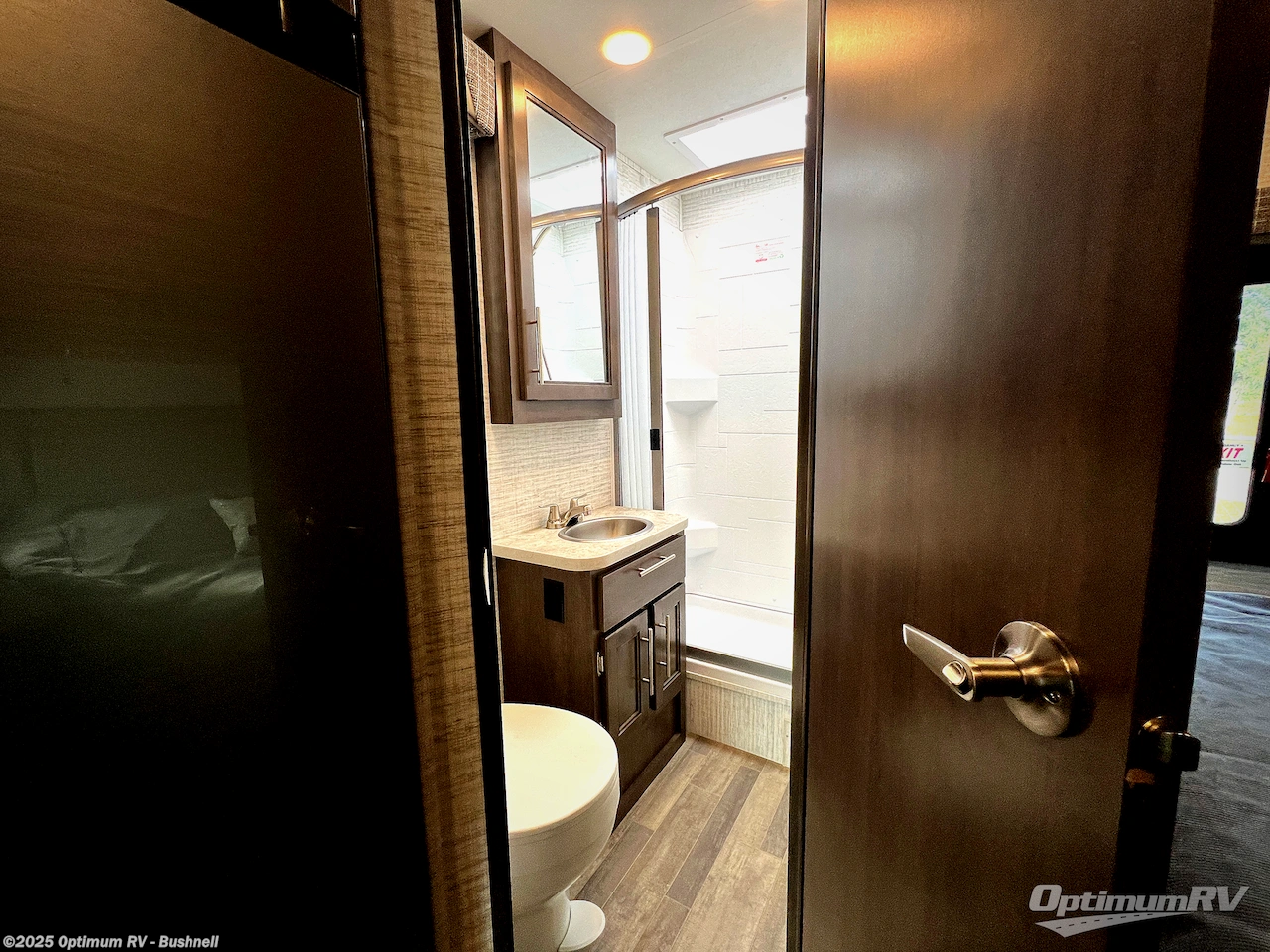 There's a comfortable place to sleep for everyone in this motorhome! From the corner 60" x 70" queen bed that slides out to the bunk over cab, and even the 42" x 70" booth dinette once converted. You can store your favorite snacks and hang up your clothes in the wardrobe/pantry. The chef can prepare delicious meals with the two burner cooktop and if there happens to be any leftovers then they can be stored in the 10 cu. ft. 12V refrigerator. The rear corner bathroom has a 24" x 36" shower that you are sure to enjoy after a long day of traveling!