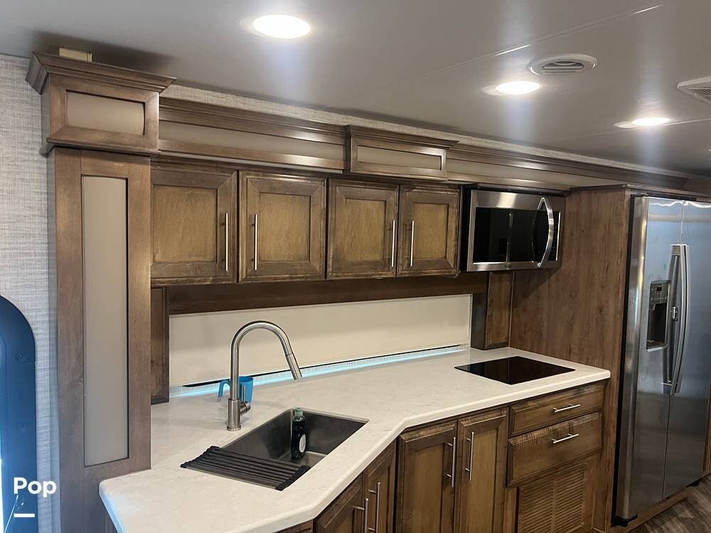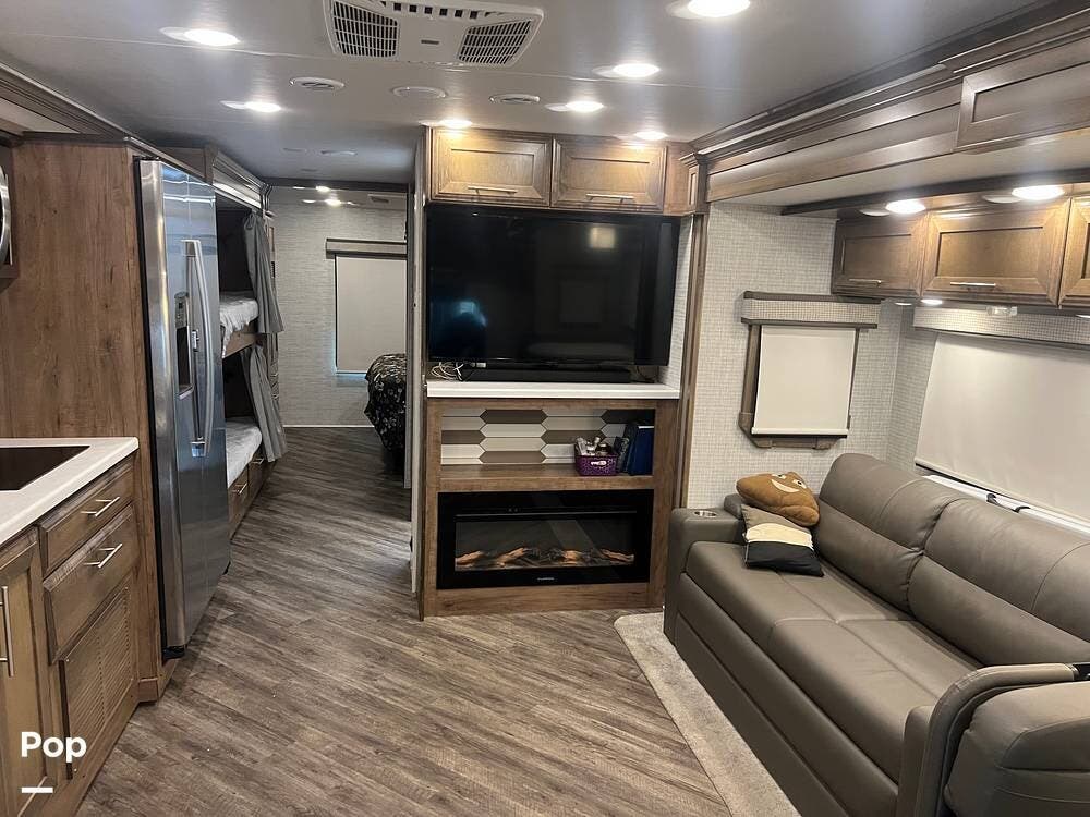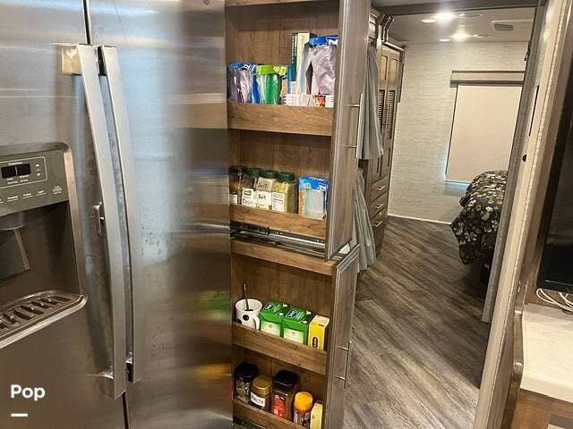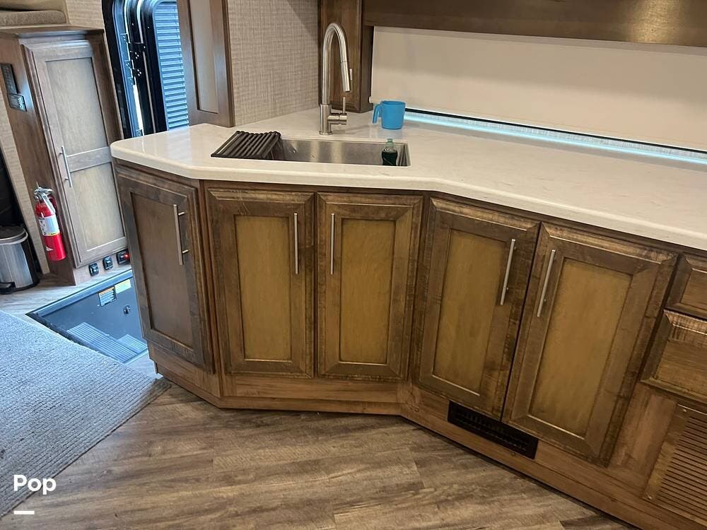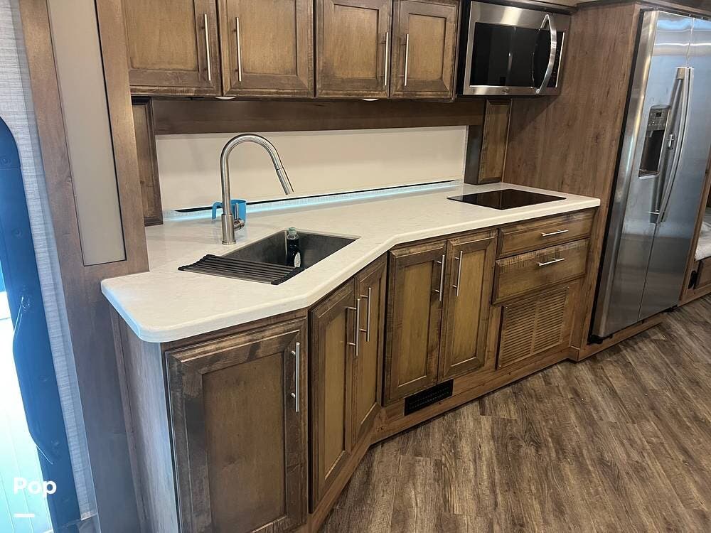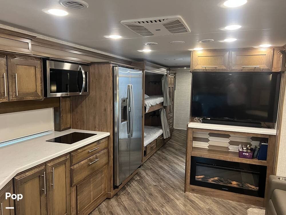 There is plenty of room to move around this coach; it feels bigger than a 37-foot RV. With a large seating area and a great kitchen, you can live the life with this coach.