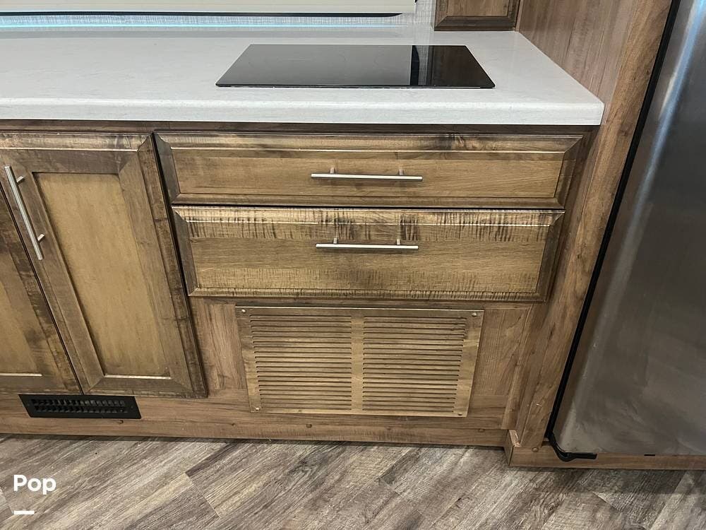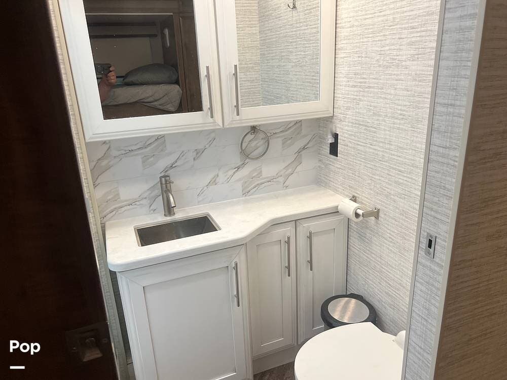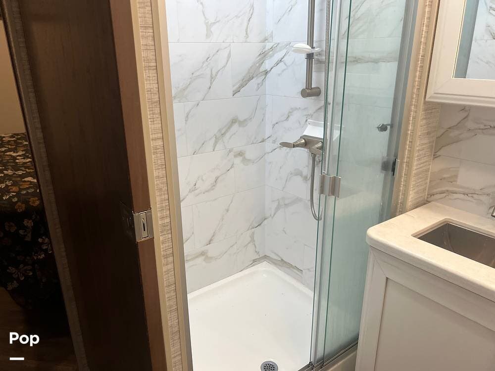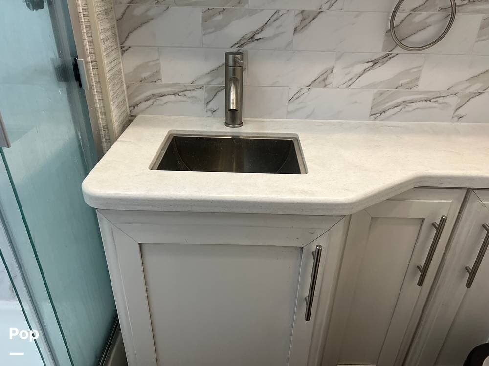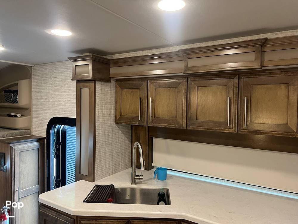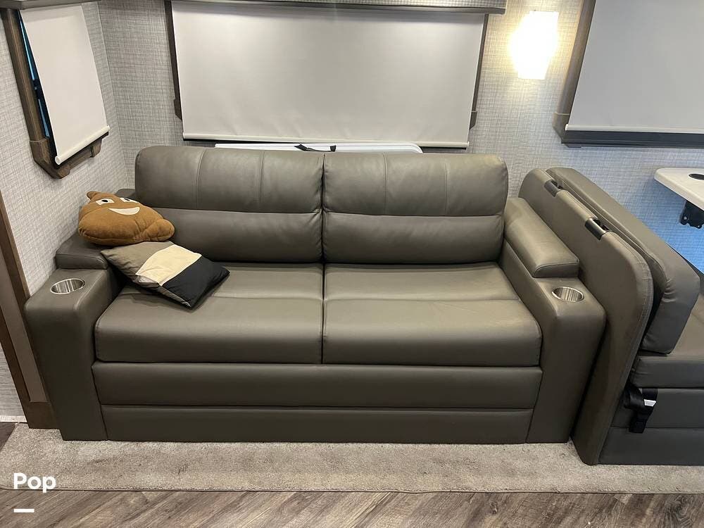 There is plenty of room to move around this coach; it feels bigger than a 37-foot RV. With a large seating area and a great kitchen, you can live the life with this coach.