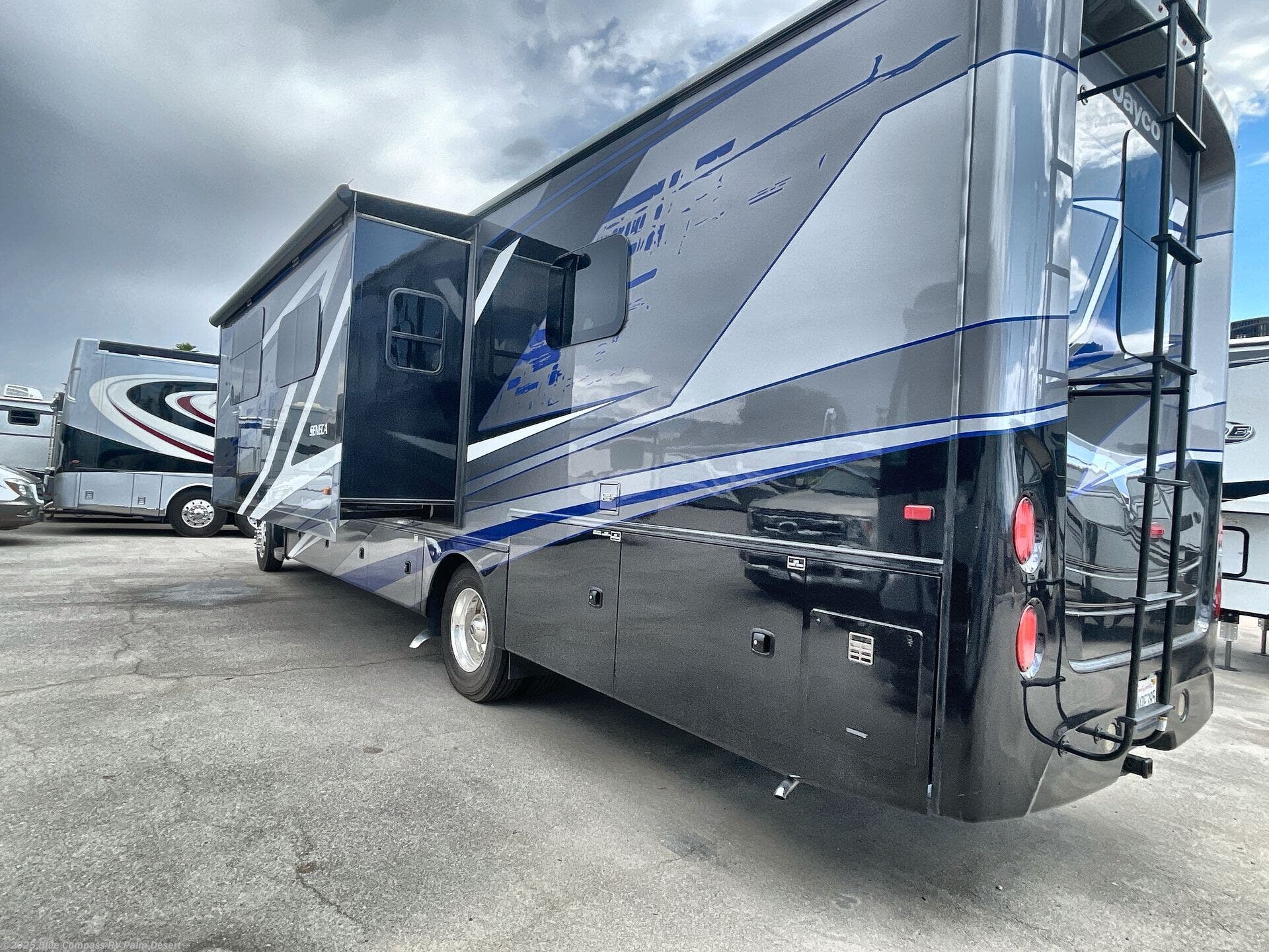 You won't be able to see past the luxury found on this Seneca Prestige Super C diesel motorhome! The first thing that feels ultra glamorous is the master suite which has its very own full bathroom, and the fact that this coach has both a full and a half bathroom will push you towards inviting guests. The main living area is kept spacious when you open up the large slide, and you can also create some more countertop space in the kitchen by opening up the countertop extension. If you want to make fast meals, use the residential convection microwave, and if you want to host a late-night party, set up the exterior entertainment center which comes with an LED TV mounted on a swivel bracket, outside speakers, and an AM/FM radio.