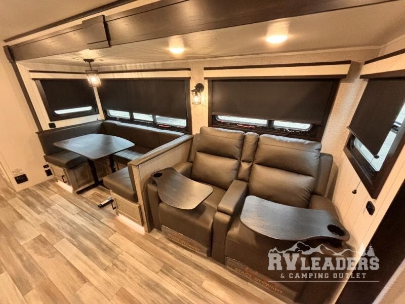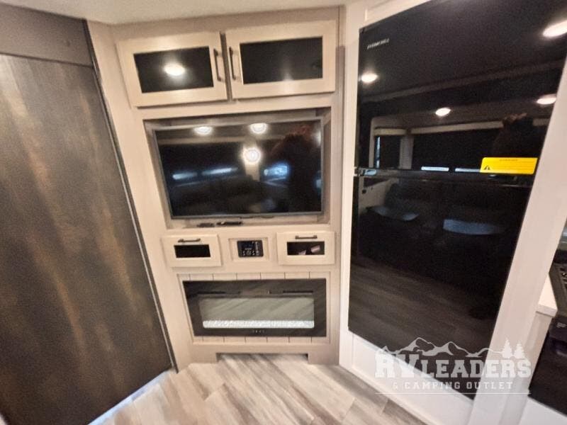 Bring the whole family along in this spacious travel trailer. You will love visiting outside while the chef of your group prepares breakfast on the outdoor kitchen, plus there is a 21' power awning to shade you from the sun. If the weather isn't cooperating, head inside and dine around the U-shaped dinette. There is also a tri-fold sofa here, a fireplace, and an LED TV for movies. This model conveniently has dual entry doors so you can enter in through the main living area, or into the front private bedroom. The bedroom also features a queen bed, dual wardrobes, and a closet to keep your items organized. Start camping today!