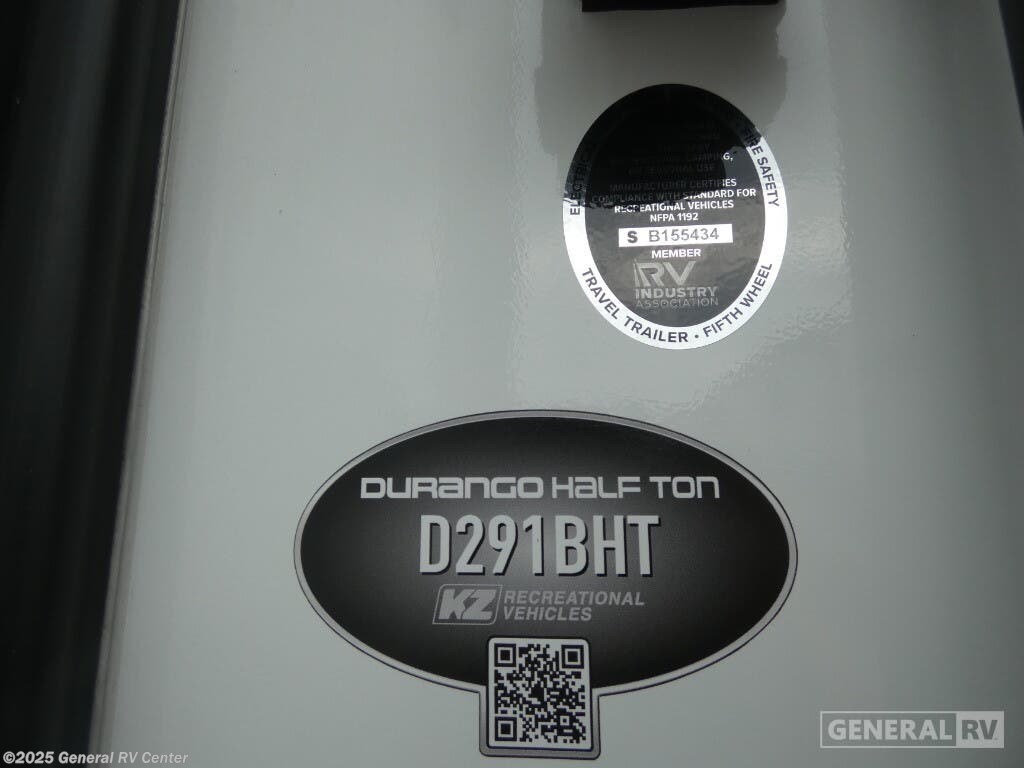 KZ Durango Half-Ton fifth wheel D291BHT highlights: Private Bunkhouse Suite Theater Seating with USB Ports Triple Slides Pass-Through Storage 18 Cu. Ft. French Door Refrigerator Outside Kitchen with Pellet Smoker Your guests will feel right at home when they go camping with you since they will have their own bunkhouse suite with a half bath! There are three bunks here, plus an entertainment center. The spacious full bath is up by the front private bedroom, and here you'll enjoy a queen bed, a slide out wardrobe, plus a closet with washer and dryer prep. Everyone can meet in the main living area at the booth dinette, or on the theater seating, plus this area includes a 43" Smart LED TV. Head outdoors to cook on the outside kitchen that includes a pellet smoker, a griddle, a sink, plus a refrigerator. Each Durango Half-Ton fifth wheel by KZ provides lightweight towing with interior luxuries galore! Controlling the functions of your unit will be a breeze with the KZ Engage powered by OneControl that includes new integrated buttons screen to control awnings, lights, tanks, and more. There are so many exterior conveniences to make each trip enjoyable, like the Dexter® axles with self adjusting brakes height adjusting hangers metal latches on the baggage doors, heated water convenience center, and the flip-up main entry steps! Durable construction includes Tufflex PVC roofing, Pex® in-floor heated waterlines kitchen gray pipes, and a reinforced heavy-duty fiberglass front cap.