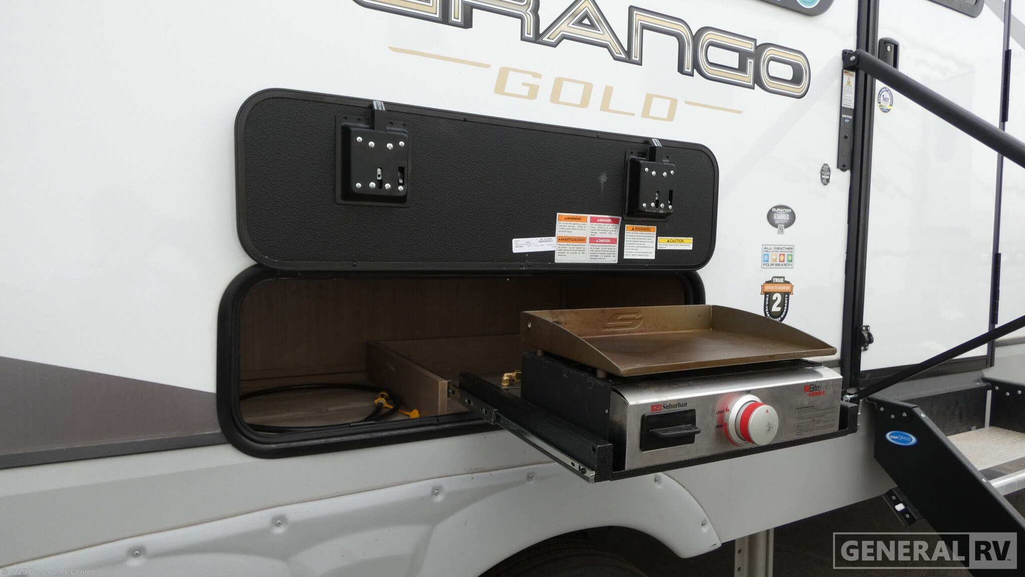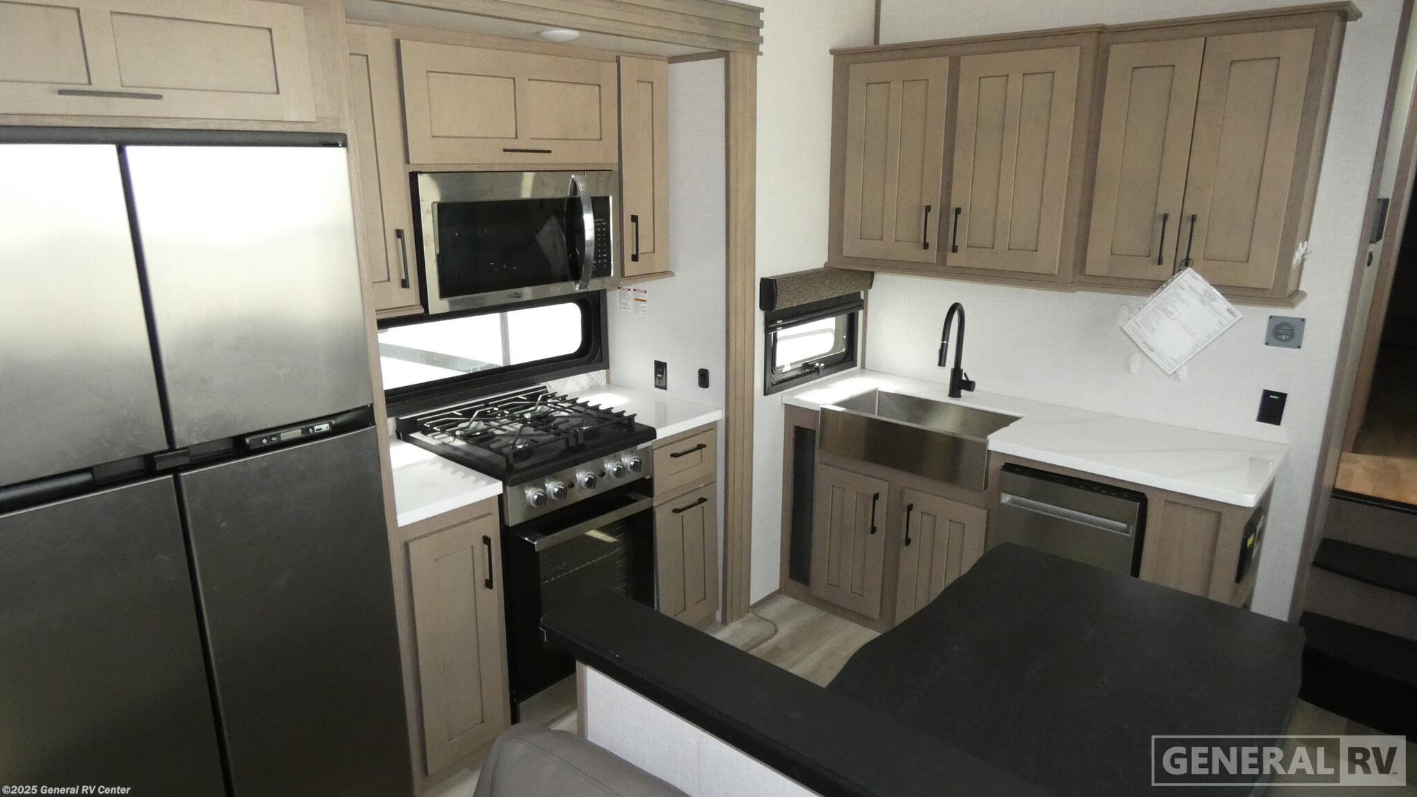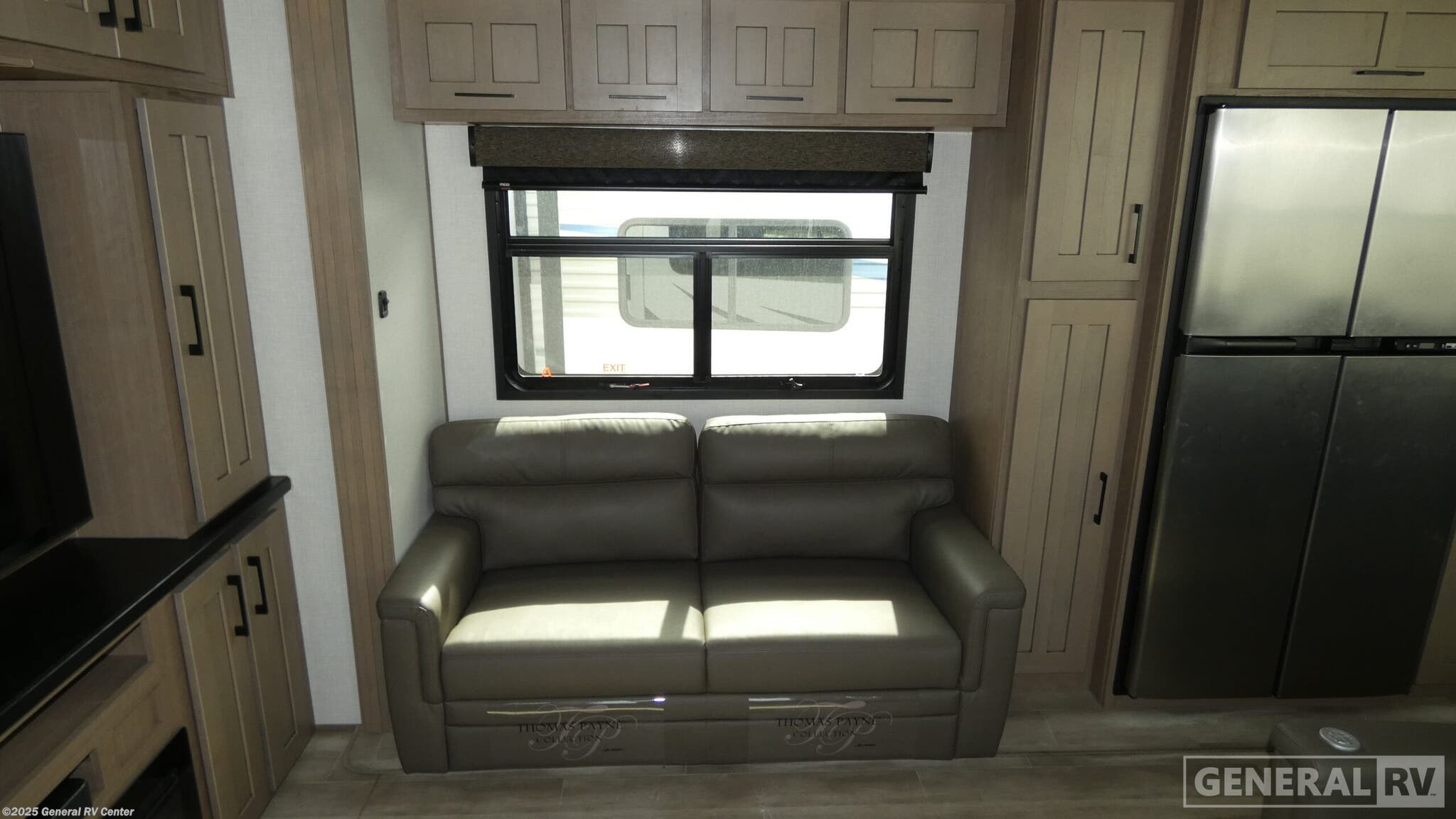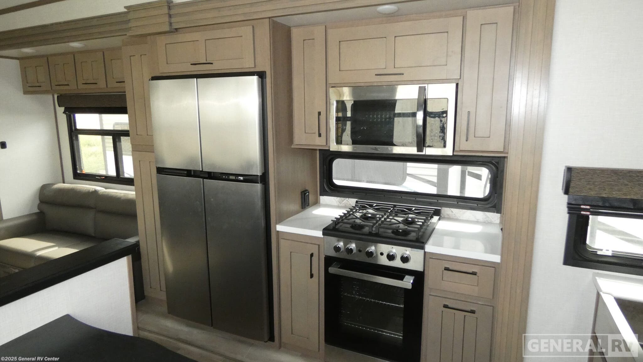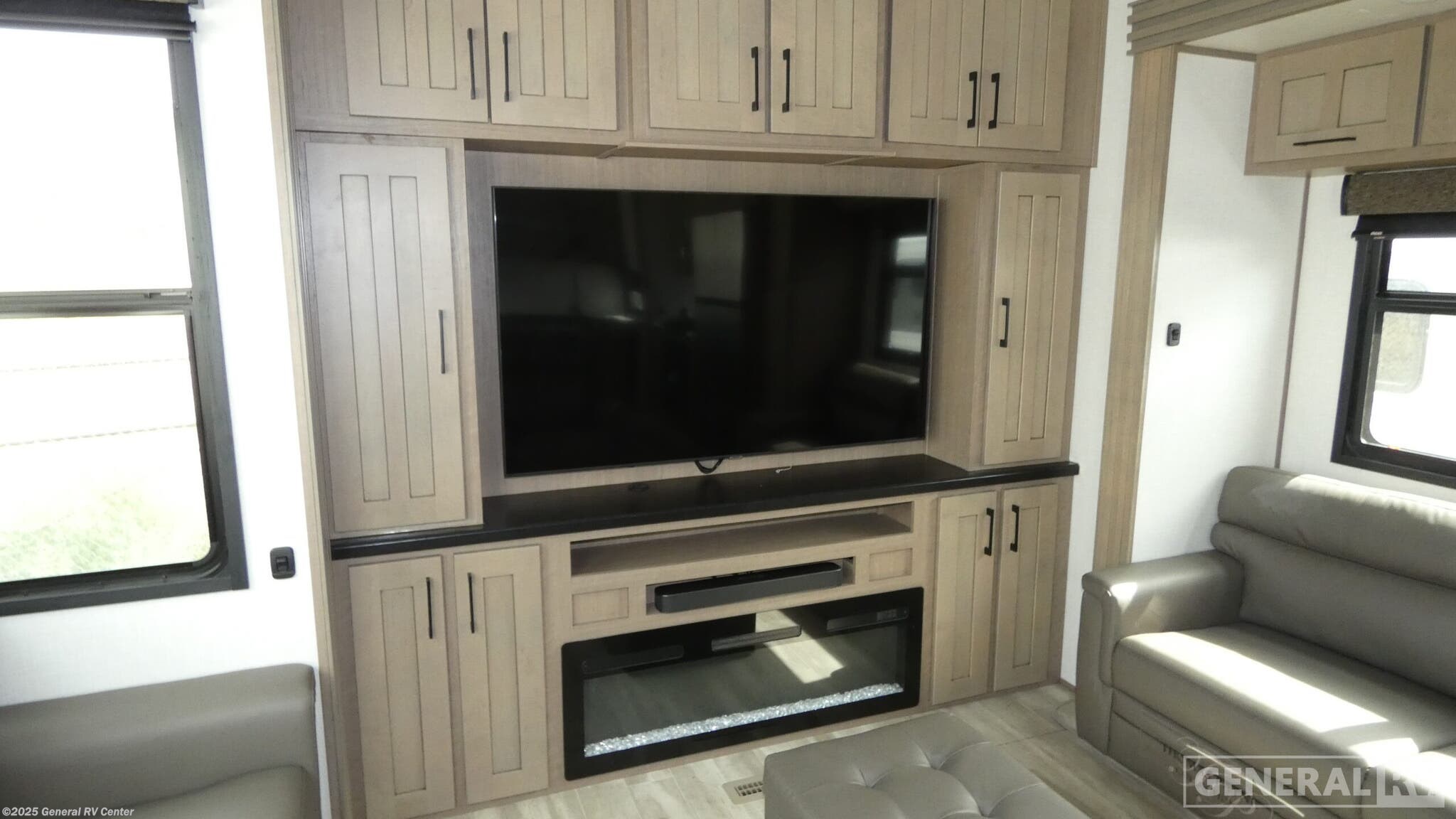 Experience the pinnacle of luxury and comfort with the 2024 KZ Durango Gold G360REQ. This fifth wheel is designed to be your home away from home, offering ample space and high-end features that make every journey memorable. With its spacious floorplan, including a center kitchen and rear living area, you'll find a perfect blend of functionality and style. The kitchen is a chef's delight, boasting a full-sized refrigerator, convection microwave, and a four-burner cooktop, ensuring you can whip up gourmet meals on the go. Relaxation is at the forefront in the rear living area, where plush theater seating and dual hide-a-bed sofas surround an inviting 65" TV and fireplace. The master suite promises restful nights with a king-sized electric tilt bed, and washer/dryer prep ensures convenience for extended stays. The residential shower with a seat adds a touch of spa-like luxury. With a 16-foot powered awning and outside griddle, the outdoor experience is equally enticing, perfect for enjoying the fresh air and stunning views. Visit your nearest General RV dealership to explore this remarkable RV in person.