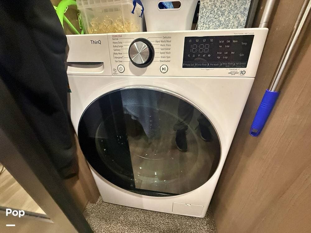 Included is an LG clothes washer and hookup for an electric dryer. No vent hole has been cut, however, a stackable ventless LG dryer would be compatible.