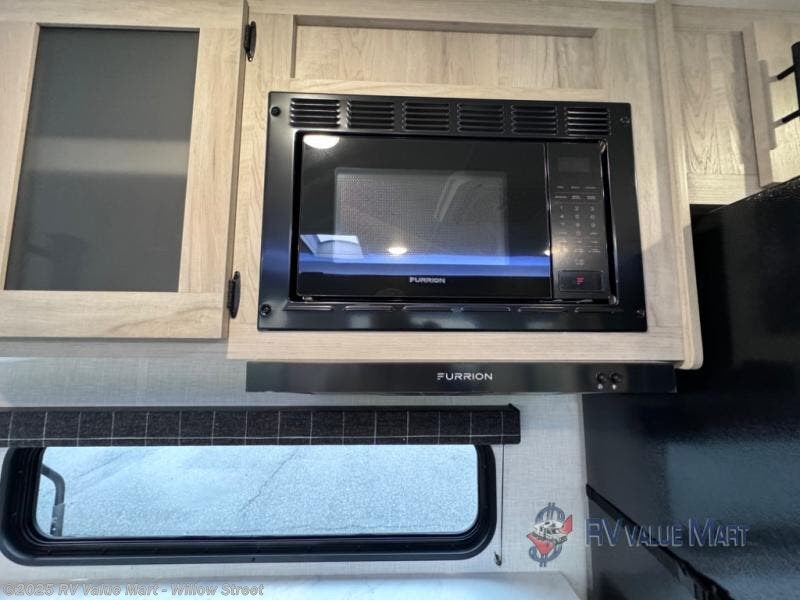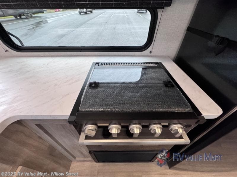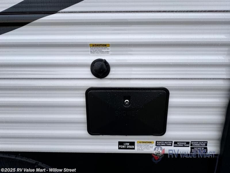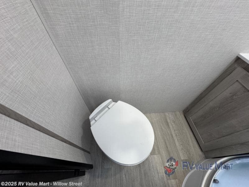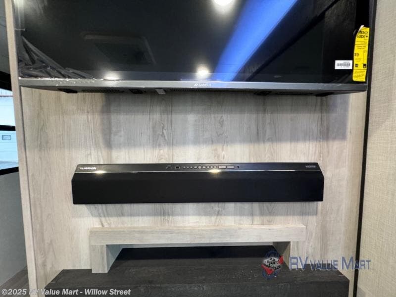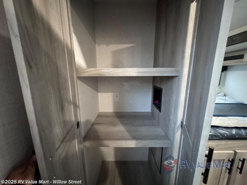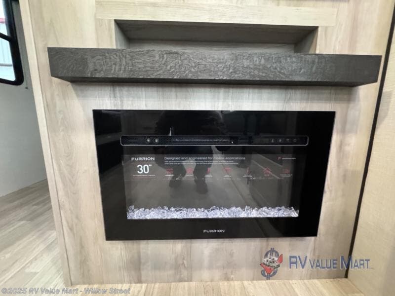 Pack your bags and park this destination trailer at your favorite spot! The kiddos or guests can sleep in the front private bunkhouse with the set of 34" x 72" bunk beds and the bunk above the 28" dinette, plus there is a closet to store their clothes and a TV for their entertainment. You will enjoy your own privacy with the rear private bedroom which has a king bed slide, a dresser with a TV, and a wardrobe with washer and dryer prep. One of the dual entry doors even leads directly into the private bedroom. The main living area includes a second slide out with the U-shaped dinette and hide-a-bed sofa, or you can choose the optional theater seating. Everyone can freshen up in the full bathroom with the radius shower and keep their bellies full with a three burner cooktop.