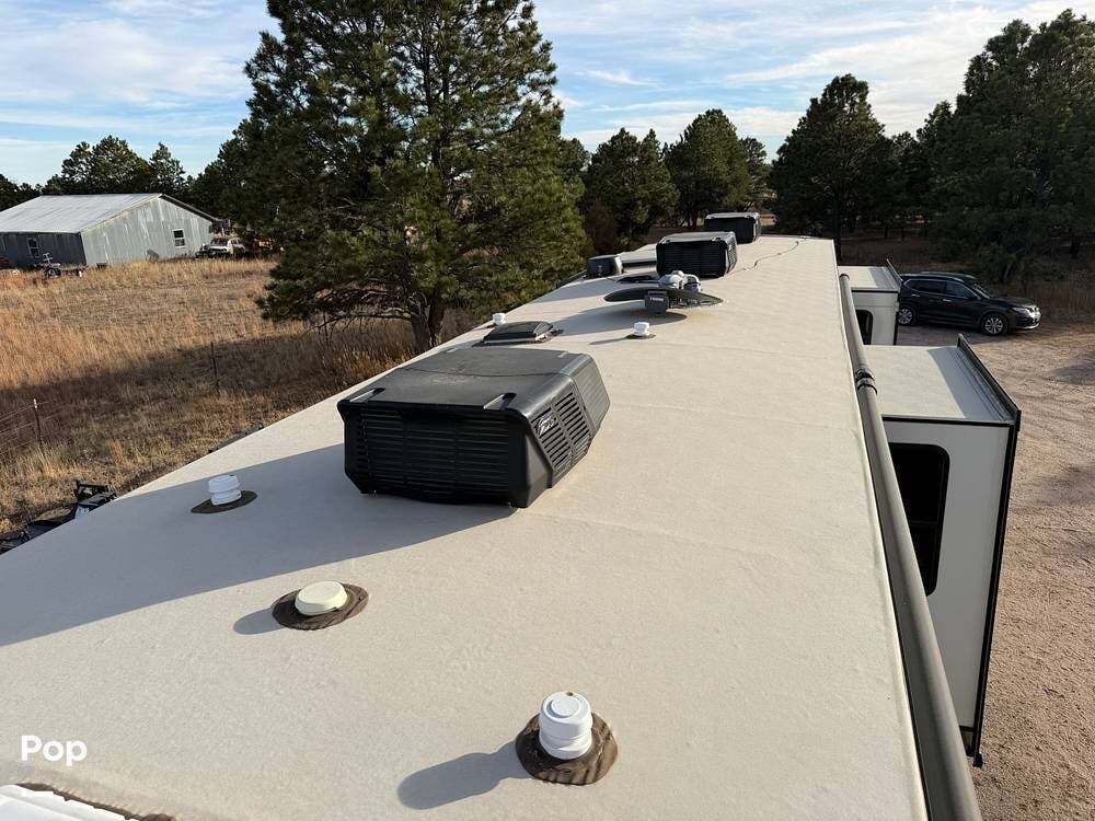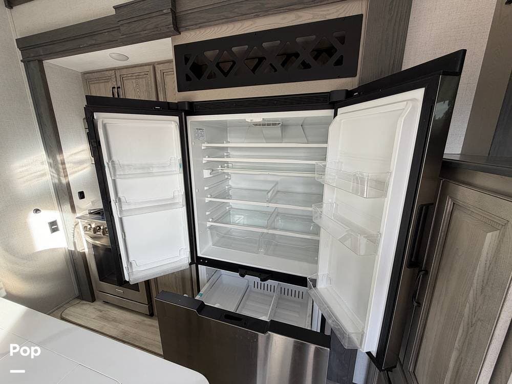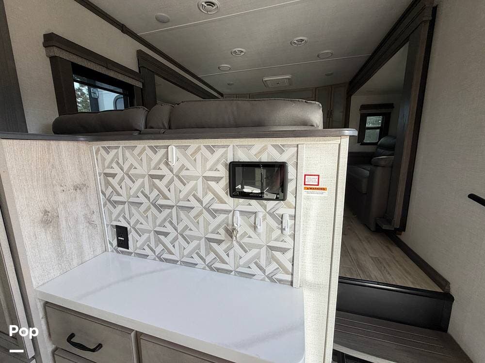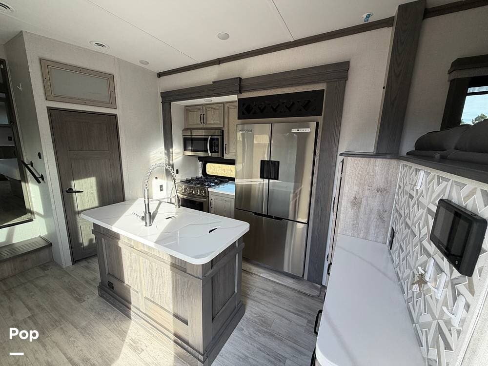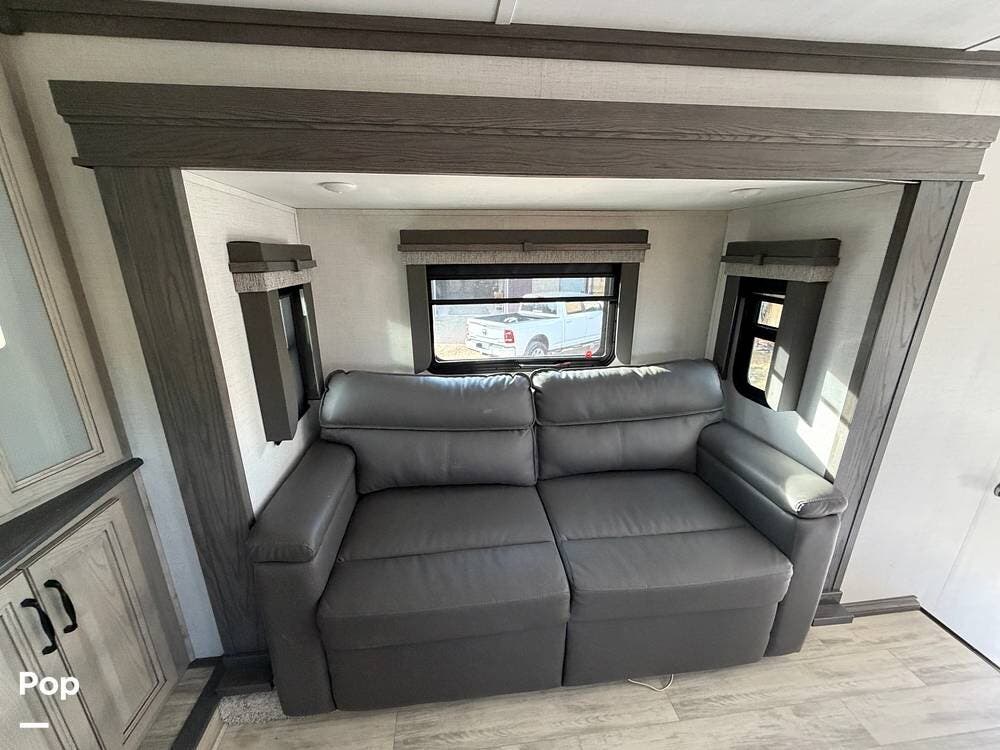 This Keystone RV is built with a four-season insulation package to ensure year-round comfort. The owners have upgraded this fifth wheel with Furrion backup and side cameras, 14-ply tires, and a satellite system with auto-seek. Don't miss out on this luxurious fifth-wheel!
