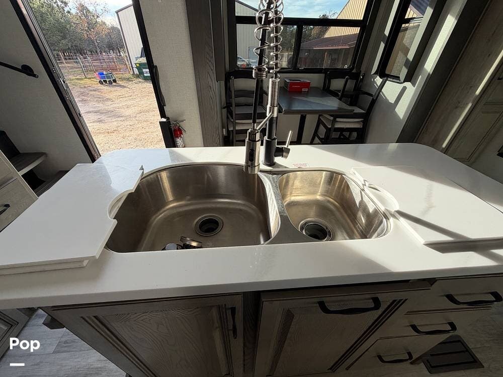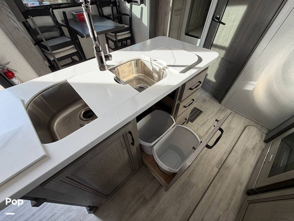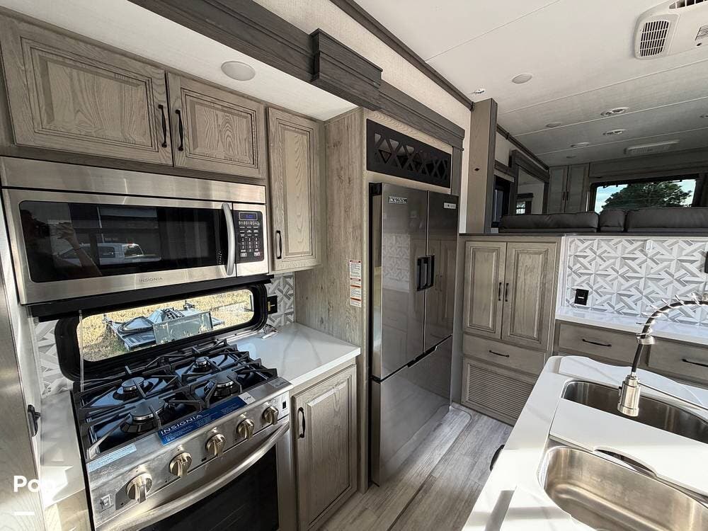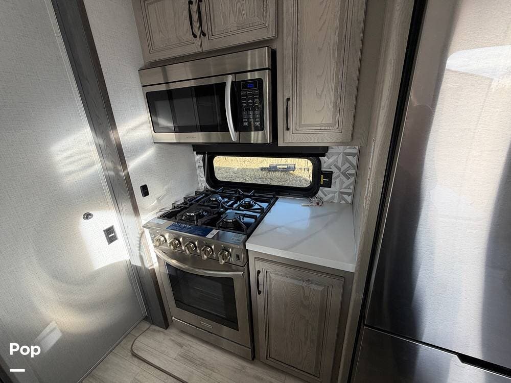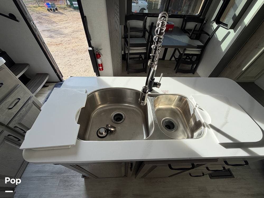 This Keystone RV is built with a four-season insulation package to ensure year-round comfort. The owners have upgraded this fifth wheel with Furrion backup and side cameras, 14-ply tires, and a satellite system with auto-seek. Don't miss out on this luxurious fifth-wheel!