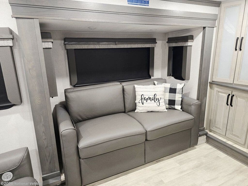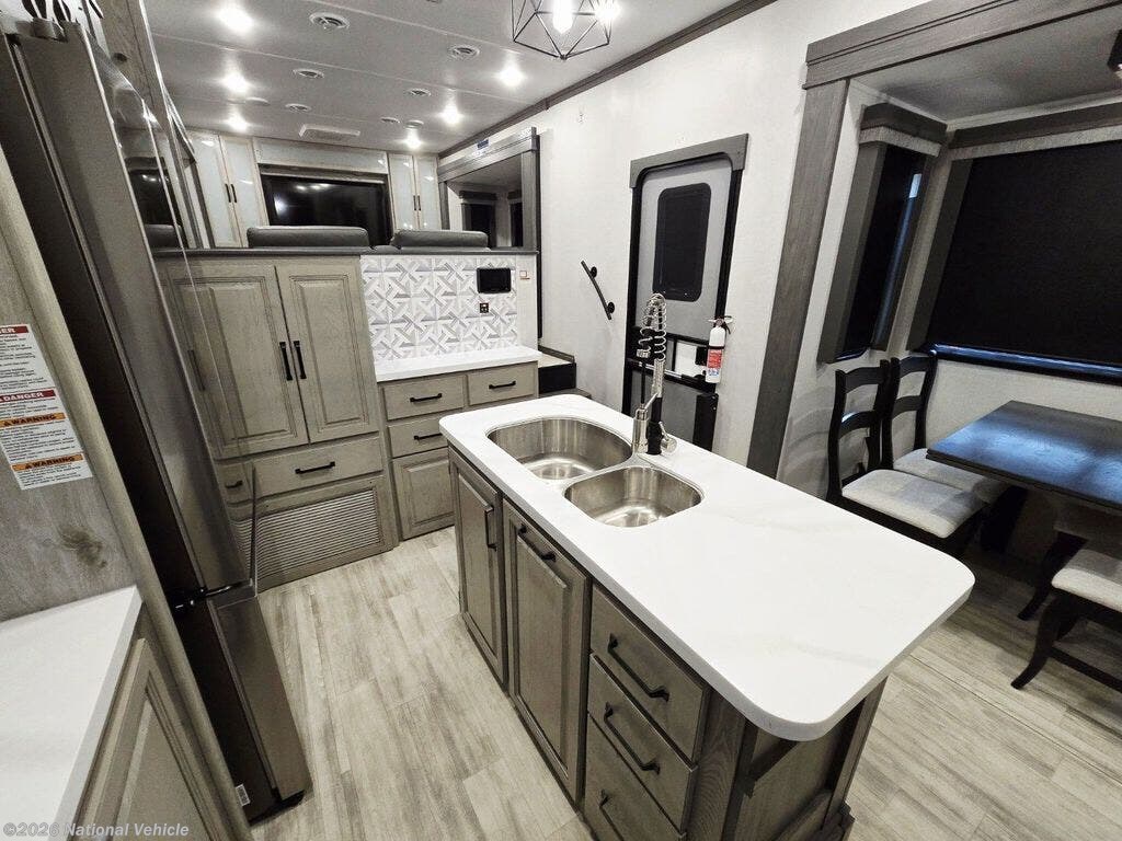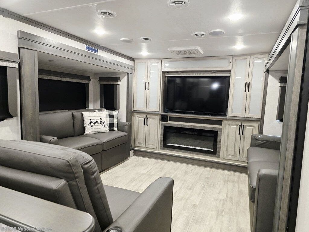 Step into residential luxury and wide-open space with this 2024 Keystone Alpine 3700FL?a front-living fifth wheel designed for those who want high-end comfort and full-time capability.
