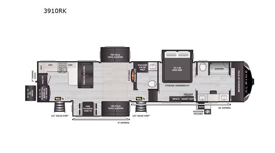 Spacious 2024 Alpine 3910RK.