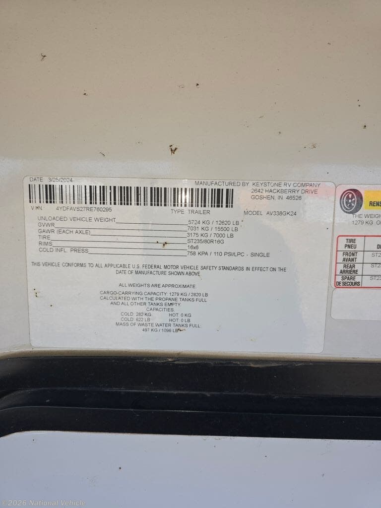 Request More Info on this 2024 Keystone Avalanche 338GK Offered for sale by National Vehicle