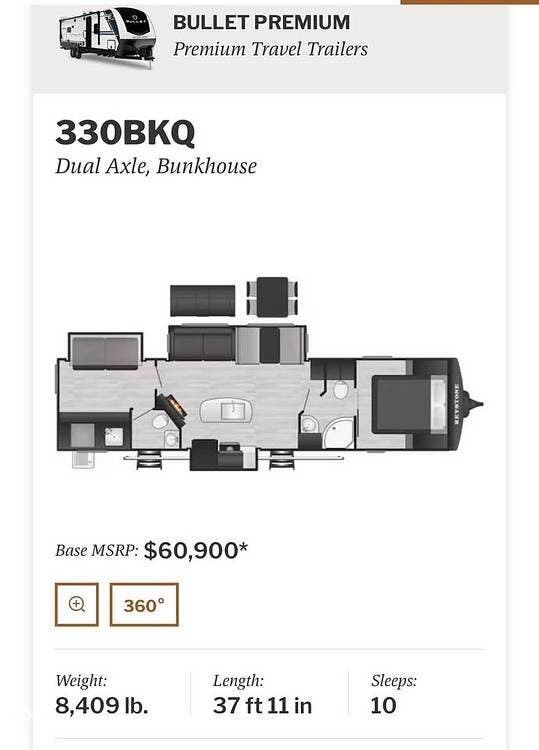 Request More Info on this 2024 Keystone Bullet 330BKQ Offered for sale by Pop RVs