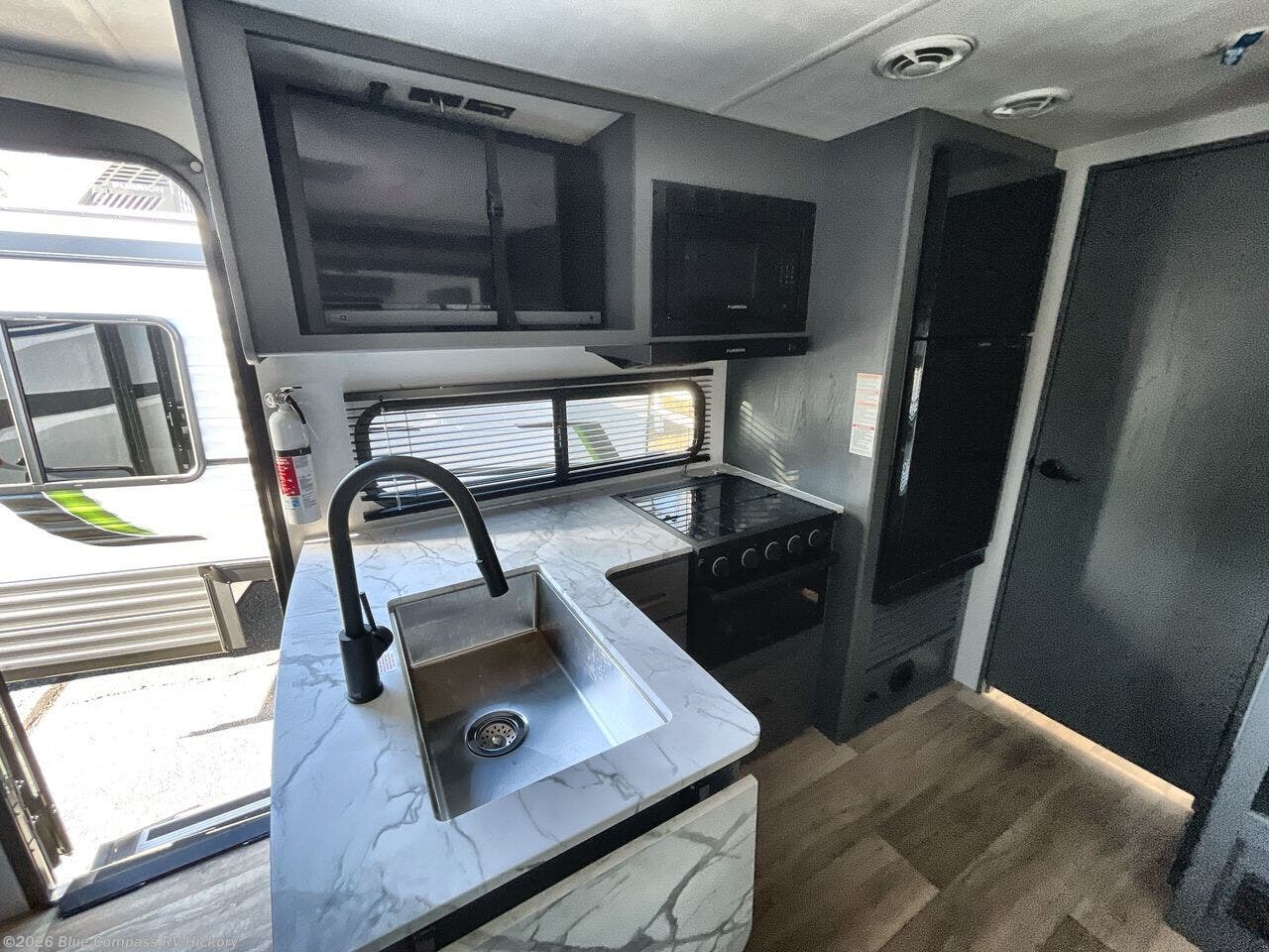 Each Bullet Crossfire Double Axle travel trailer by Keystone is constructed with a NORCO HSLA steel/automotive deposition coated frame assembled with huck bolts for durability. The TORFLEX rubber torsion suspension will provide smooth towing, and the one-piece ABS enclosed underbelly will help extend your camping season. Setting up your trailer will be a breeze with the electric tongue jack and four electric stabilizer jacks, and there is an electric awning with adjustable arms and LED lighting for an inviting outdoor living space. The affordable, high-quality RV solar energy system, SolarFlex Protect 220 comes standard with each model and will allow you to go off-grid when you want, or you can choose the optional SolarFlex Discover 440i for even more off-grid capabilities. Inside, you'll find fabric night shades, Beauflor woven flooring in the slides, full depth cabinets with full extension drawer guides, and many more comforts.