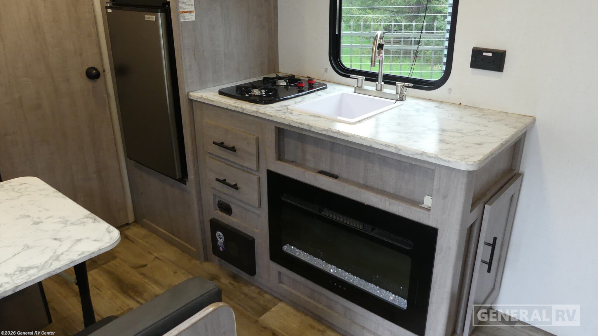 Keystone Coleman travel trailer 17R highlights: Full Rear Bath Fireplace Queen Bed Booth Dinette After making dinner on the two burner cooktop or microwave, you can dine at the booth dinette or outside under the 10' power awning if you brought along your camping chairs. Either way you will be comfortable and the dinette can even be converted to sleep one person if needed. After playing outdoors all day, everyone can return to get cleaned up in the full rear bath including a walk-in shower. There is even a linen closet and space for some clothes that hang. You may then fall asleep on the queen bed up front or the dinette once converted so you can start enjoying the outdoors again the next day. With this Coleman trailer, you will experience Keystone quality throughout, plus enjoy a lightweight travel trailer while towing to the campground or RV park. Some of the inside features include mini blinds, a high rise faucet, and upgraded flooring. The friction hinged entrance door offers an oversized handle to easily make your way up the entry step, and other exterior features include a power awning and a single 20 lb. LP tank. Take this Coleman home today!