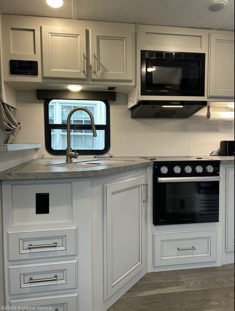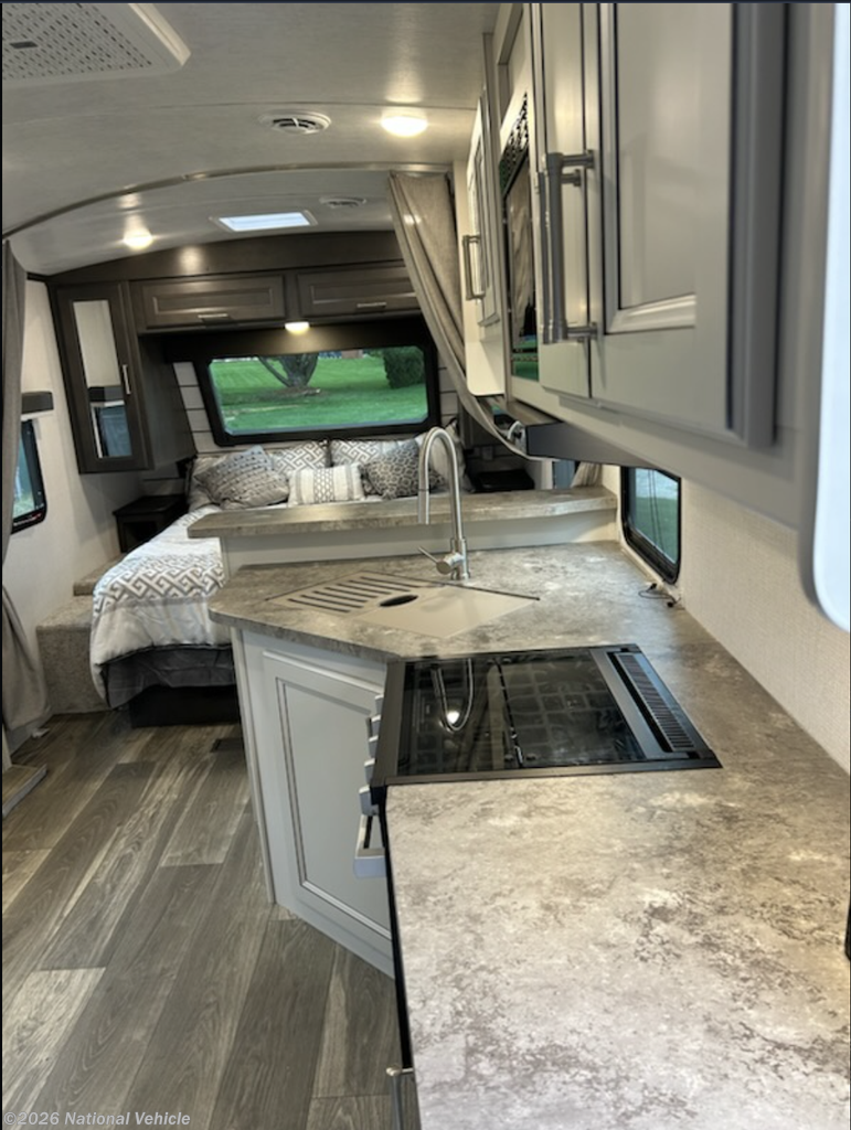 At just under 26 feet, this compact yet spacious layout features a large slide-out that opens up the living area with comfortable seating and a smart, functional design. The well-equipped kitchen offers ample counter space, modern appliances, and plenty of storage for life on the road.