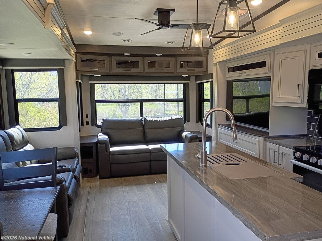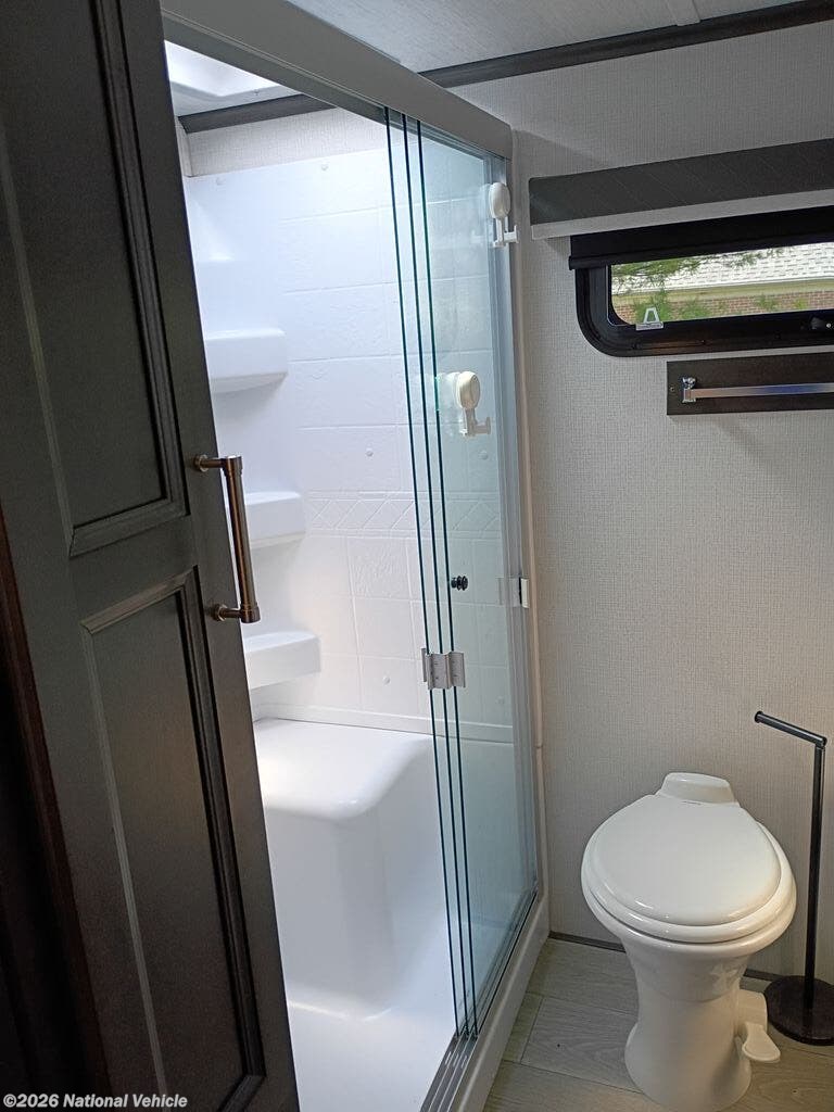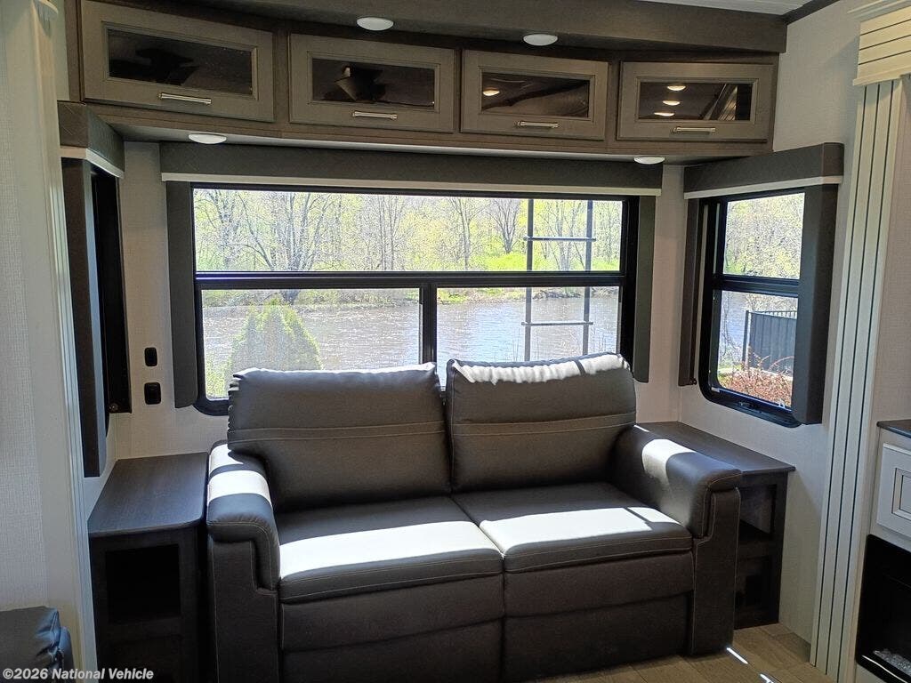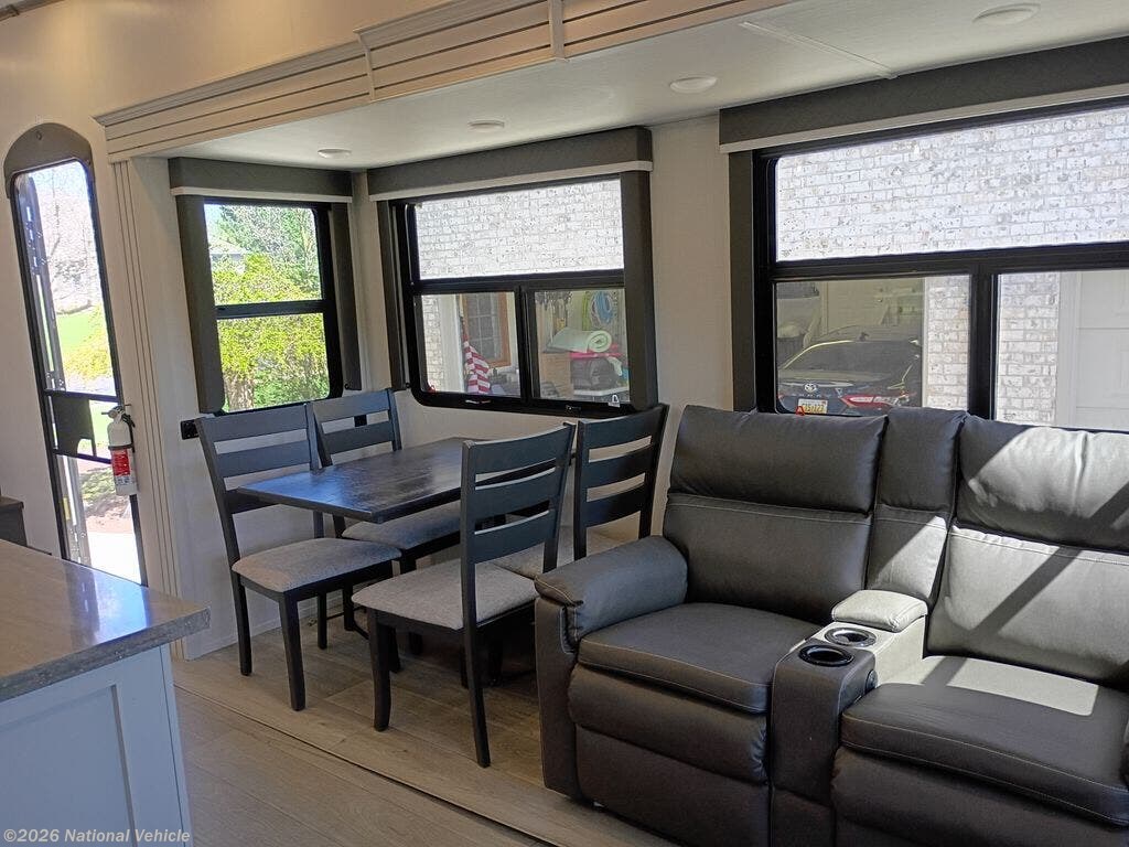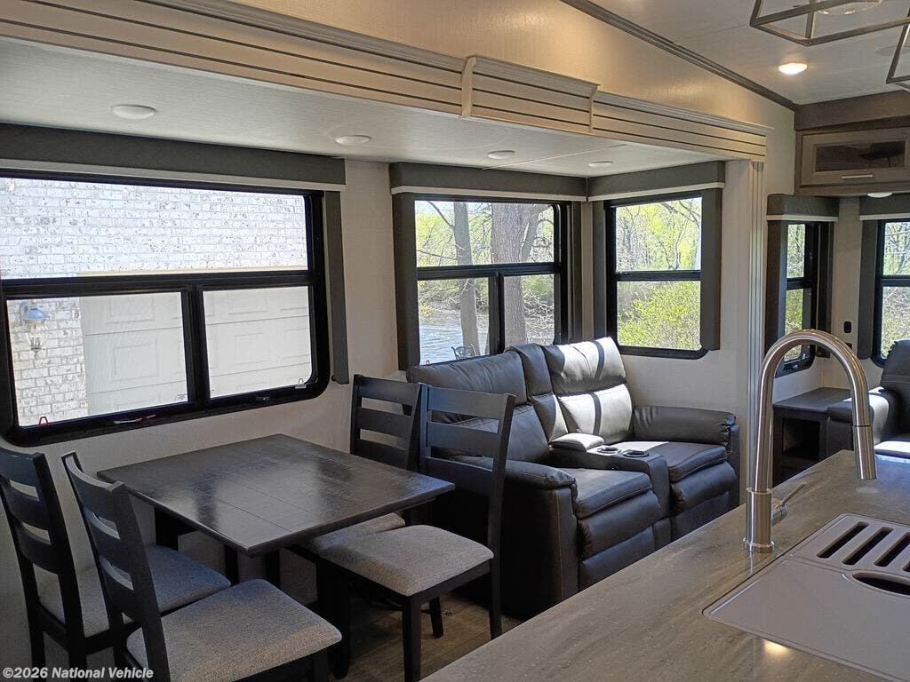 Step inside and you?re welcomed by a spacious rear living layout designed for relaxation and entertaining. Plush theater seating, a tri-fold sleeper sofa, and an entertainment center with fireplace create a true residential feel. The freestanding table and chairs upgrade enhances the dining experience, offering both style and functionality for meals, work, or hosting guests.