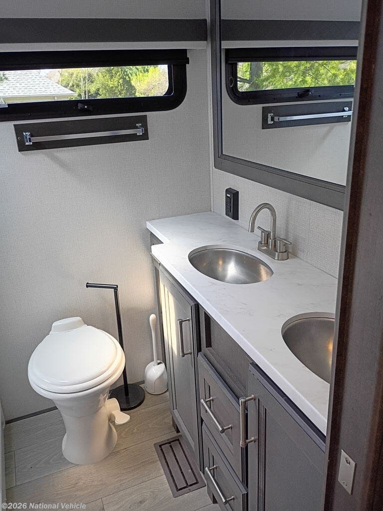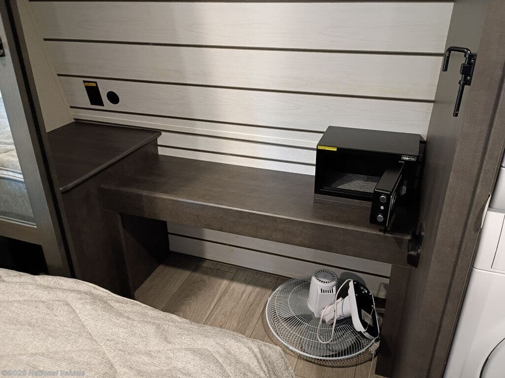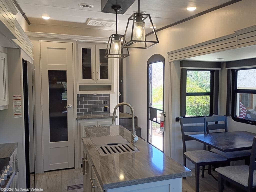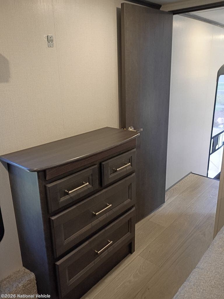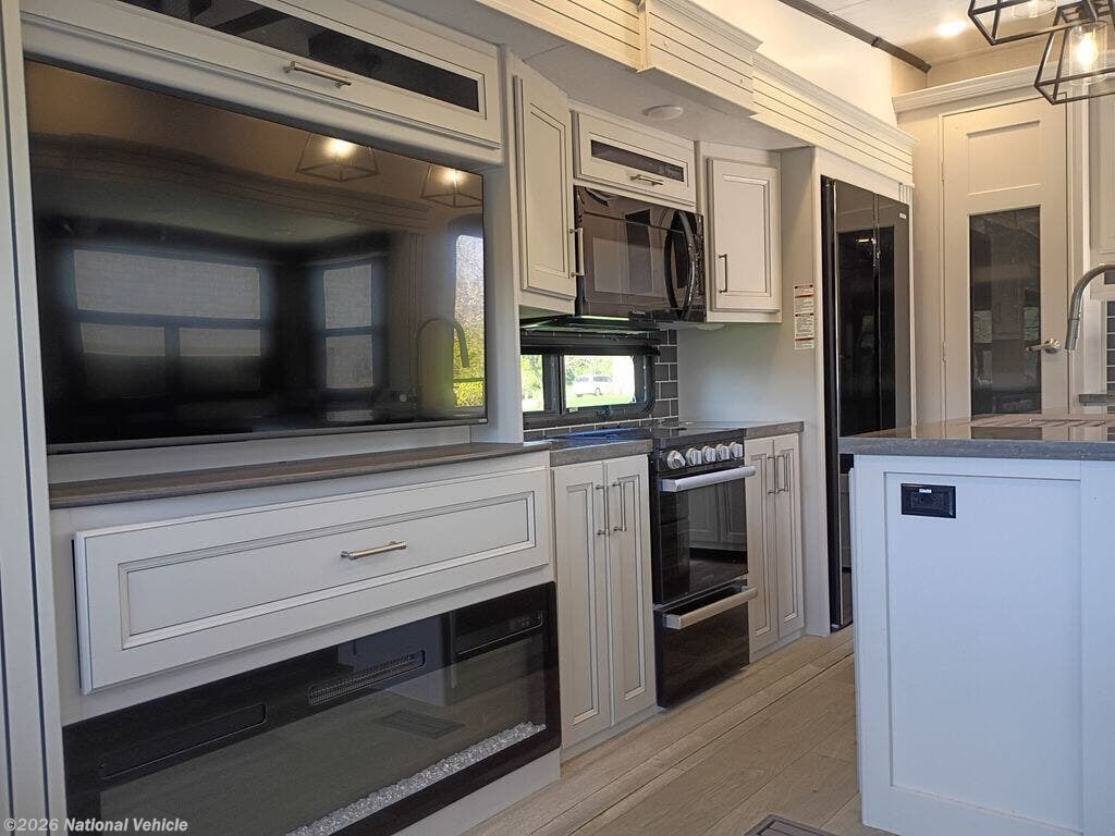 Step inside and you?re welcomed by a spacious rear living layout designed for relaxation and entertaining. Plush theater seating, a tri-fold sleeper sofa, and an entertainment center with fireplace create a true residential feel. The freestanding table and chairs upgrade enhances the dining experience, offering both style and functionality for meals, work, or hosting guests.