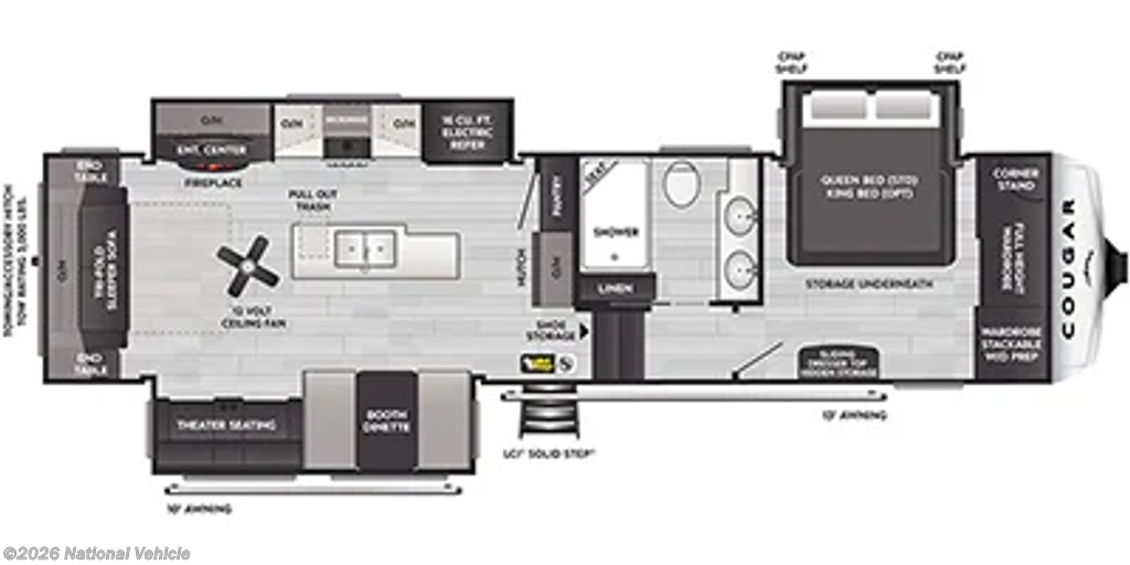 This Cougar is built for long-term comfort with a stackable washer and dryer, eliminating the need for laundromats and making it ideal for full-time RVers or extended travel. A water softener system is also included, protecting your plumbing and appliances while improving water quality wherever you go.
