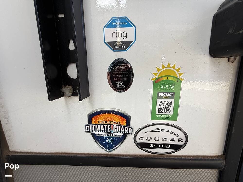 This Cougar 34TSB features several desirable amenities, including a second 13,500 BTU air conditioner in the bedroom, a King-Size mattress for maximum comfort, a second TV in the bedroom, a Winegard digital antenna, and a backup camera for added peace of mind.